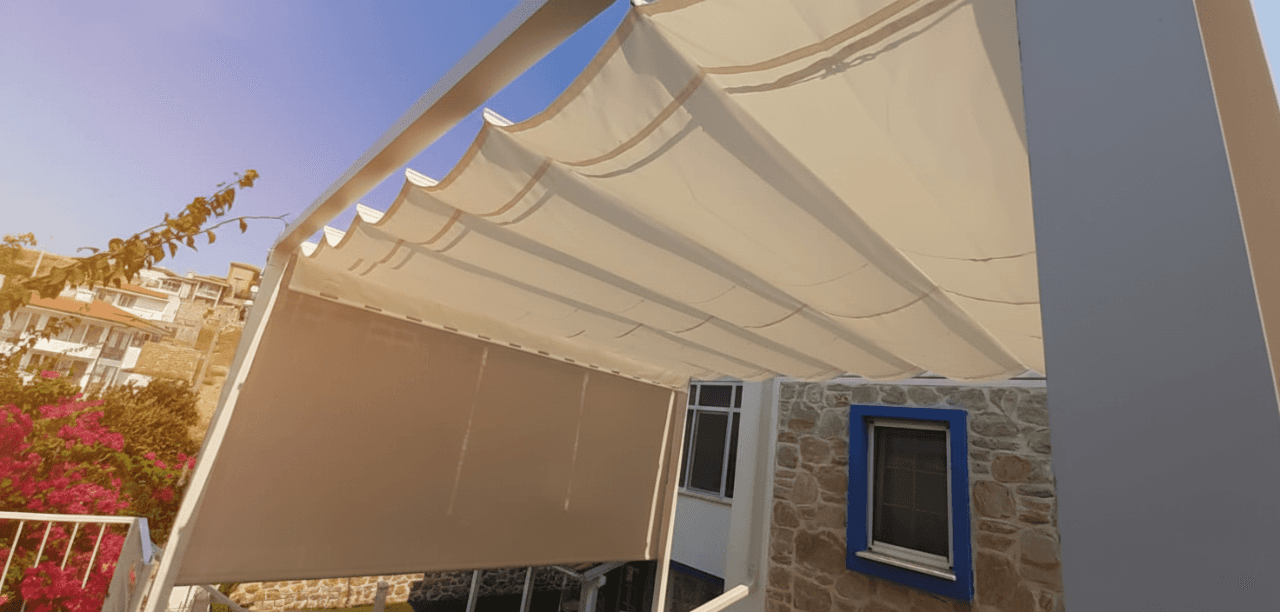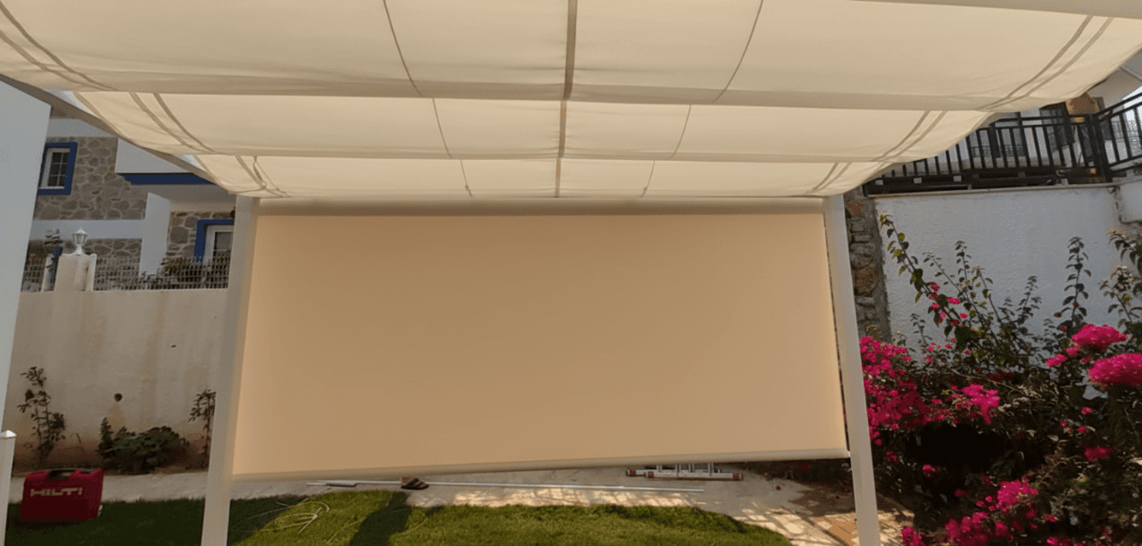 • Rüzgara Karşı Krom Halat Gücü: Datça'nın sert rüzgarları dikkate alınarak, kumaşın iki yanında zemine sabitlenen güçlü krom halat kılavuz sistemi