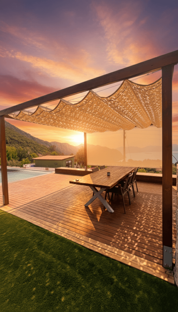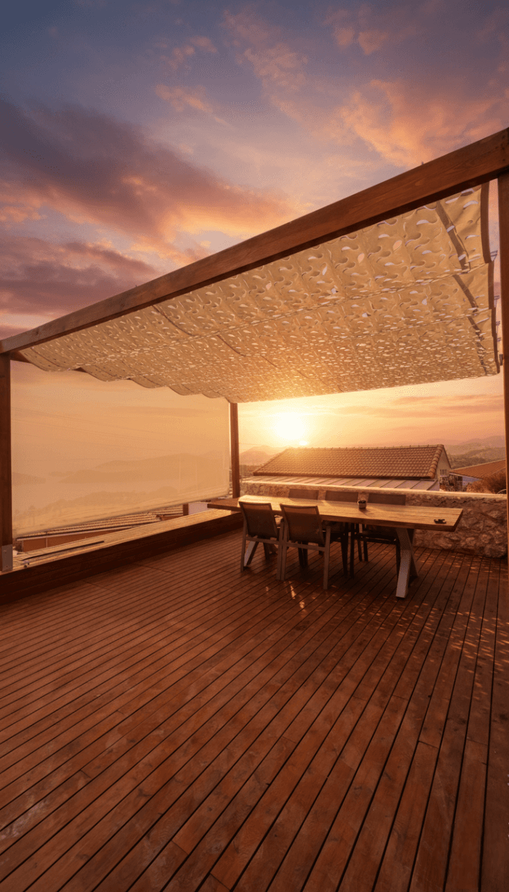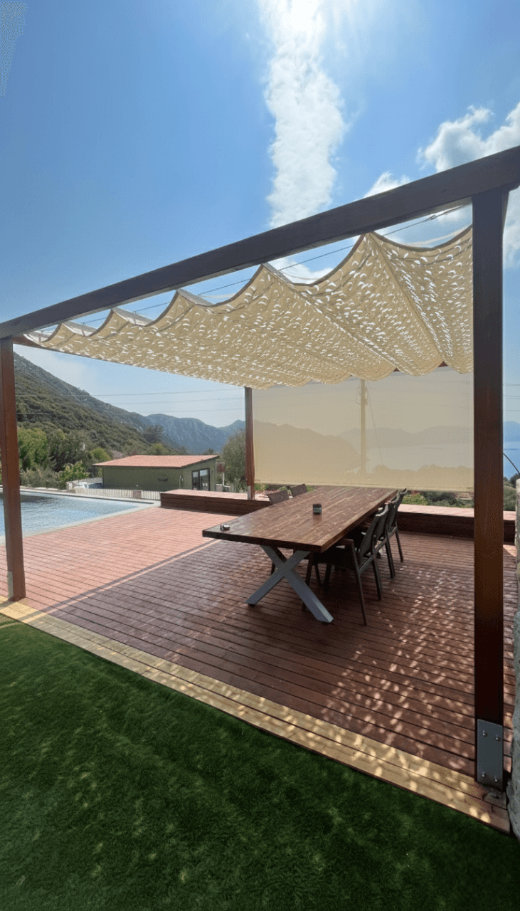 • İthal Akrilik Kumaş: ◦ Tam Mahremiyet ve Gölge: Güneş ışığını tamamen kesmek ve dışarıdan görünmeyi engellemek isteyenler için idealdir.