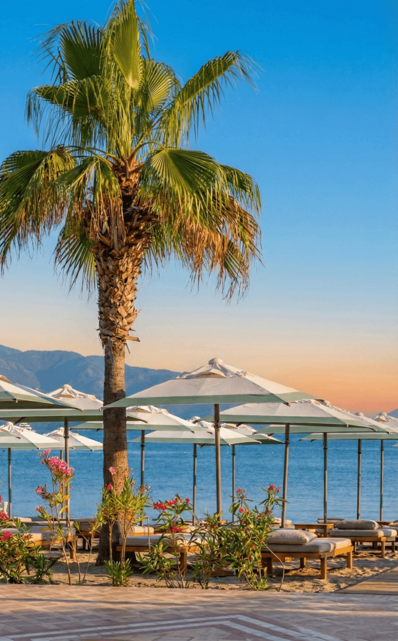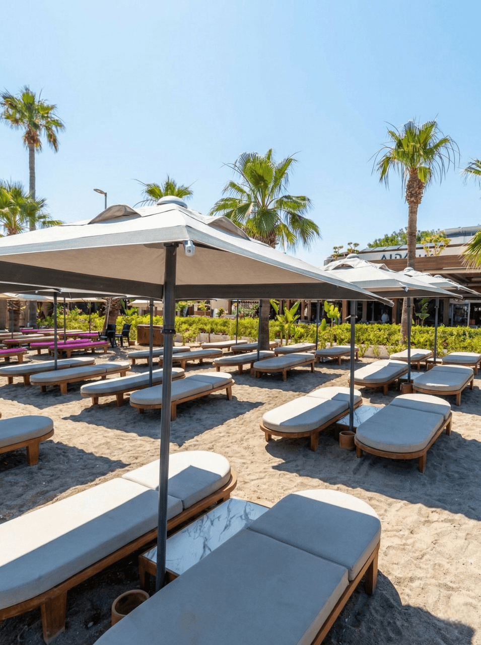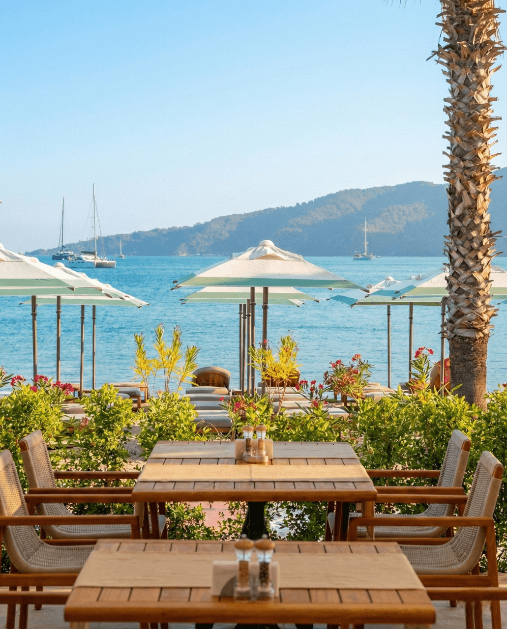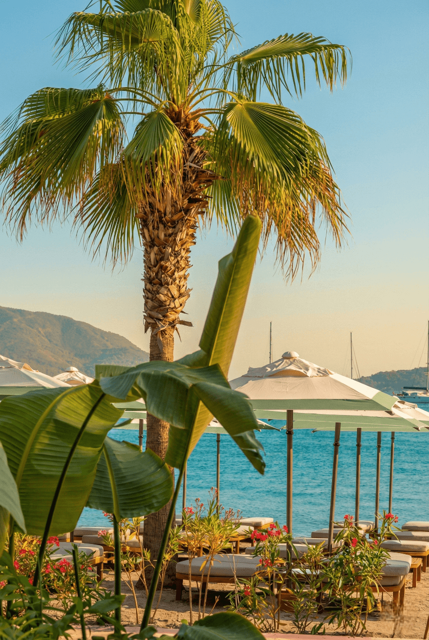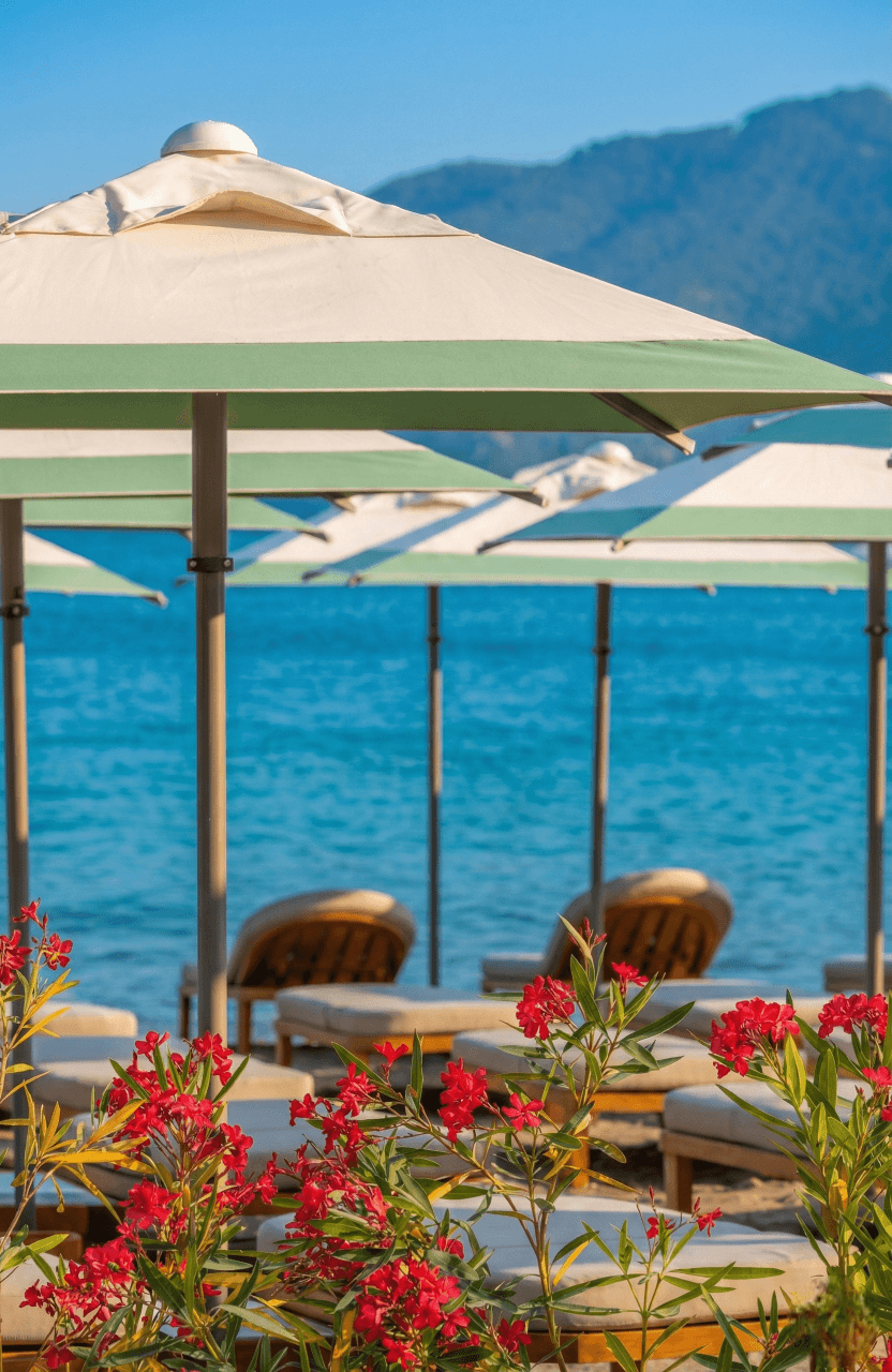 Aida Beach’in ferah ve simetrik sahil yerleşiminde tercih edilen 50 Serisi 200x200 Kare Şemsiyemiz, Marmaris'in yoğun güneş koşullarında konforlu ve rafine bir gölgelendirme deneyimi sunuyor. Açık tonlu kumaşı ve net geometrik formu ile deniz mavisiyle güçlü bir uyum yakalayan ürünümüz, misafir alanlarında estetik ve fonksiyonelliği kusursuz biçimde bir araya getiriyor. Profesyonel beach işletmeleri için uzun ömürlü ve prestijli bir çözümdür.