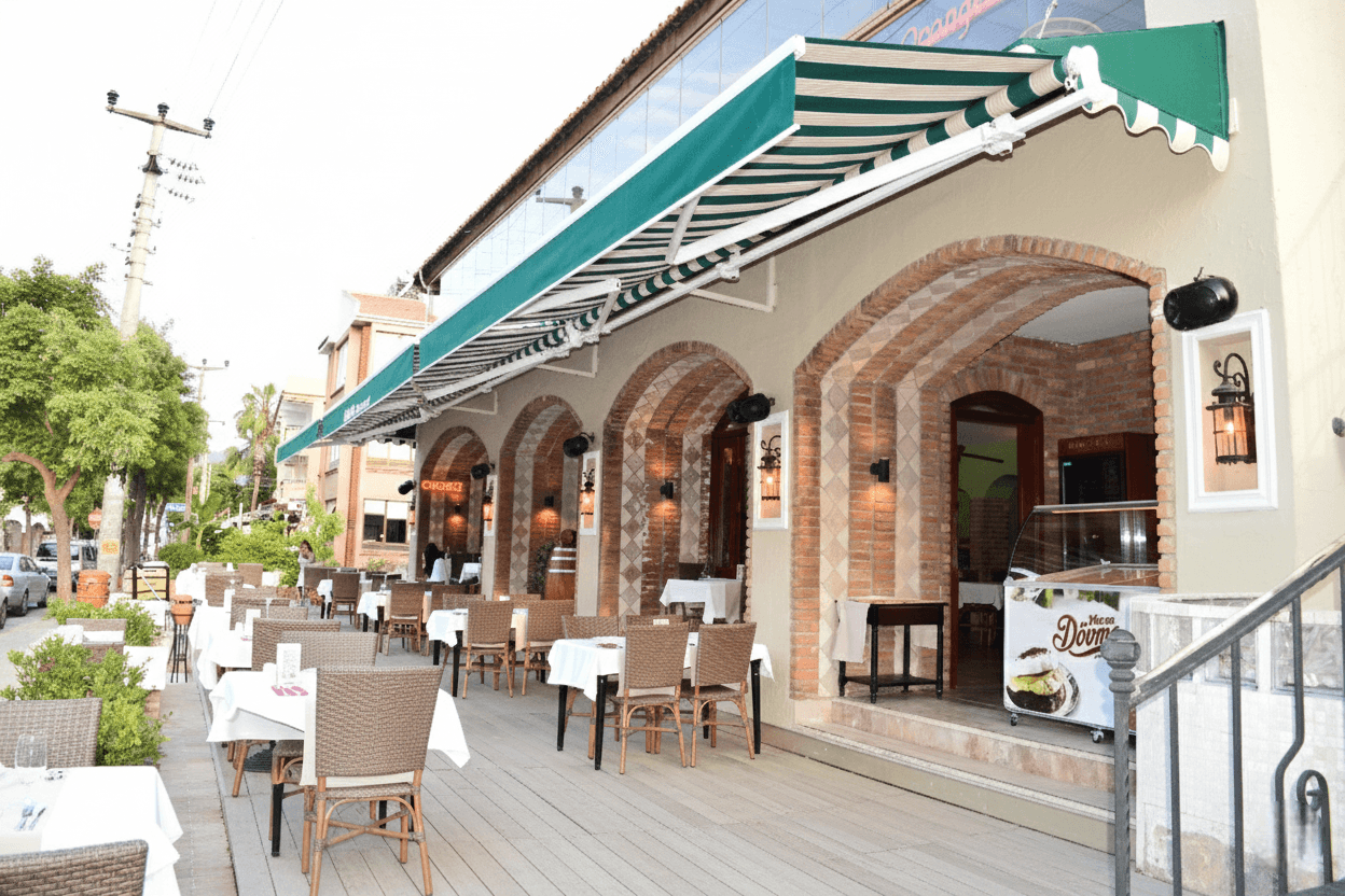 Selçuk Tente kalitesiyle hayata geçirilen bu projede, Marmaris’in parlayan güneşi ve ani yaz yağmurları dikkate alınarak şu teknik standartlar uygulanmıştır: