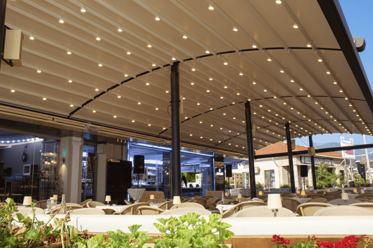Marmaris’ in en ikonik noktalarından biri olan yat limanında hizmet veren Anatolia Bar için, Selçuk Tente’ nin tasarım harikası Radius Pergola (Raylı Tente Sistemi) projemizi hayata geçirdik. Yatların ve denizin ruhuyla bütünleşen bu kavisli sistem, mekana sadece gölge değil, muazzam bir estetik kimlik ve prestij kazandırdı. Anatolia Bar projesinde fark yaratan ayrıcalıklar şunlardır: