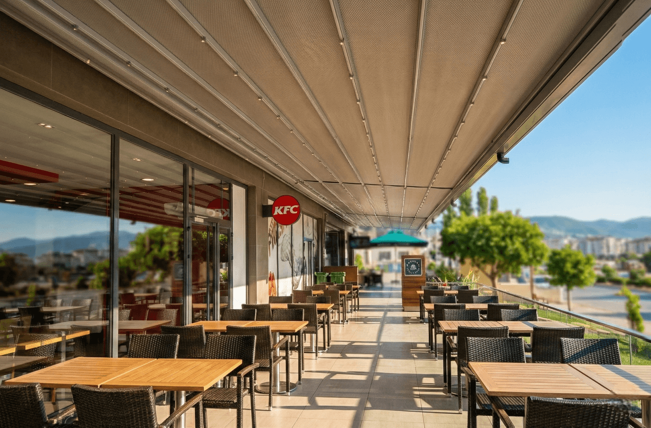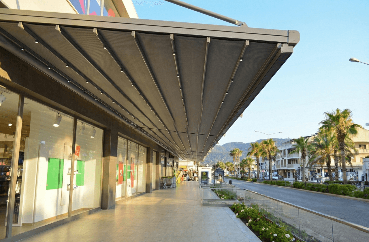 • Çok Uzun Hatlarda Kesintisiz Kapama: Blue Port'un boydan boya uzana boyunca entegre edilen bu sistem, tek parça görünümüyle görsel bir bütünlük sağlarken Marmaris’in güneşinden ve yağmurundan tam koruma sunar.