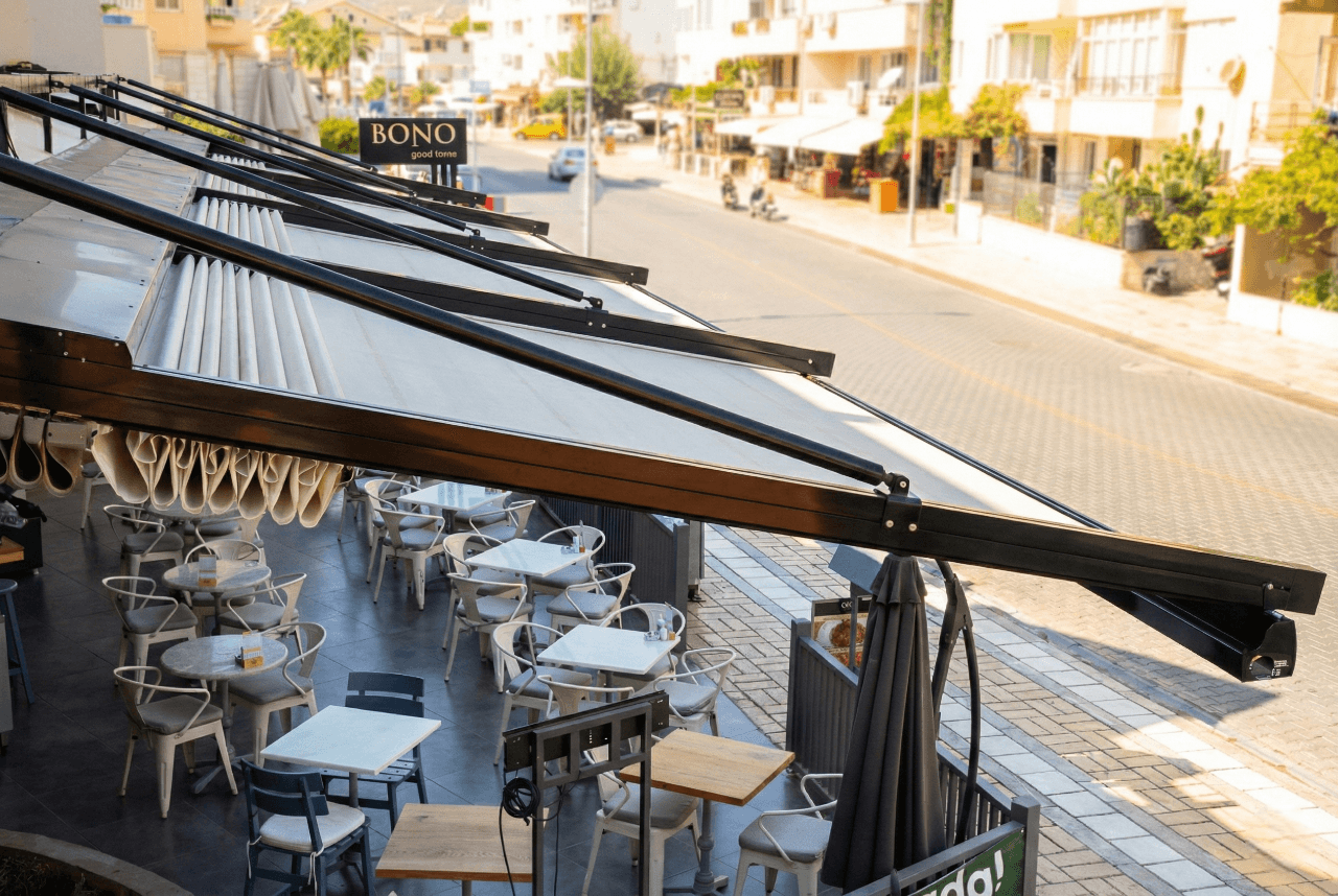 • Modern Mimari ile Kusursuz Uyum: Bono Beach’ in endüstriyel ve şık dekorasyonuyla bütünleşen antrasit profiller, mekana sadece gölge değil, mimari bir derinlik ve prestij kazandırmıştır.