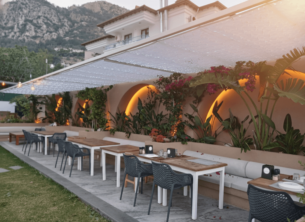 Marmaris’in en özel köşelerinden Turunç’ta, denizin maviliği ile begonvillerin pembesine eşlik eden bir zarafet: Selçuk Tente Telli Tente Sistemi. Diplomat Otel’in o meşhur kemerli mimarisi ve bohem ruhuna kusursuz bir uyum sağlayan CNC Kesim Kamuflaj Kumaş, güneşle adeta bir ışık oyunu oynuyor. Krom halatlar üzerinde bir kuğu gibi süzülen sistemimiz, misafirlerinize sadece bir serinlik değil, aynı zamanda desenli yer karoları ve şık mobilyalar üzerinde sanatsal bir gölge şöleni sunuyor. Fotoğraflarda göreceğiniz o harika gölge, Turunç’un sakin ruhunu Selçuk Tente’ nin modern mühendisliğiyle buluşturuyor.