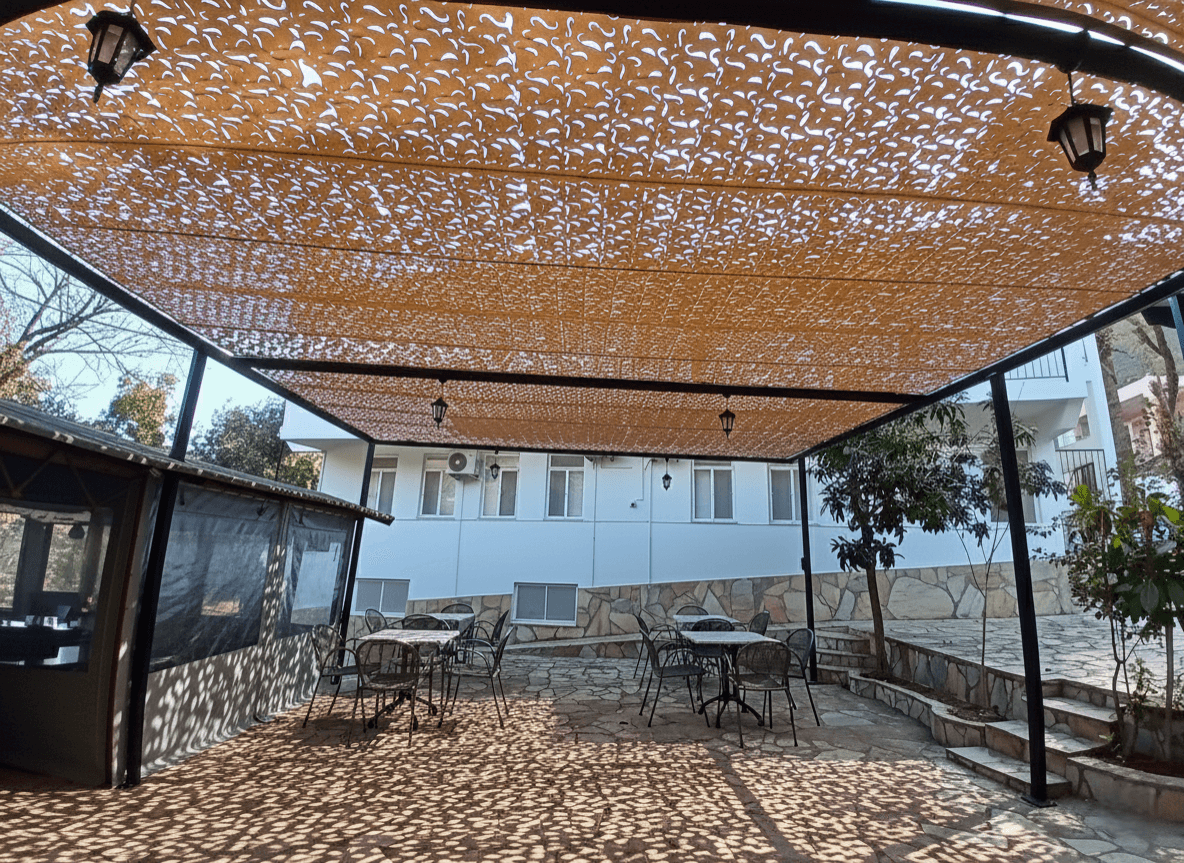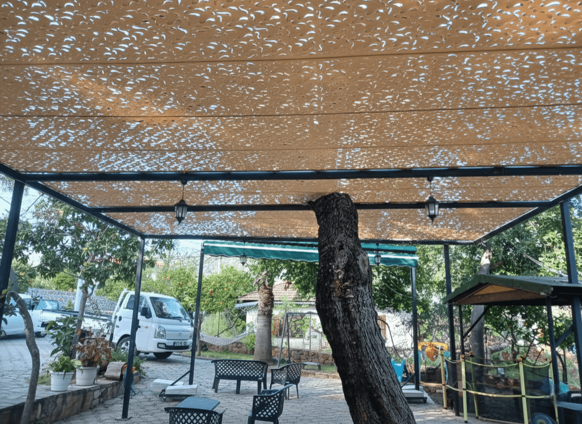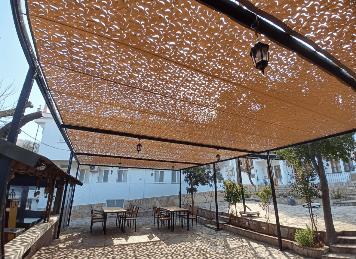 Muğla Köyceğiz’ in el değmemiş doğasıyla ünlü Ekincik Koyu’nda yer alan Ekincik Pansiyon, misafirlerine doğayla iç içe, samimi bir tatil imkanı sunar. İşletmenin deniz manzaralı açık alanlarını, Sabit Tente yapısına entegre ettiğimiz Kamuflaj Tente ürünümüzle çok daha konforlu bir hale getirdik. Ekincik’in çam ormanlarıyla çevrili ferah yapısında, lazer teknolojisiyle milimetrik olarak açılan "S" kanalları rüzgarı tahliye ederek kumaşa binen yükü azaltır ve deformasyonu engeller. Geleneksel kapalı sistemlerin aksine bu model, mekanın boğucu olmasını önleyerek her daim nefes alan, yarı-gölgeli bir kullanım alanı sağlar.