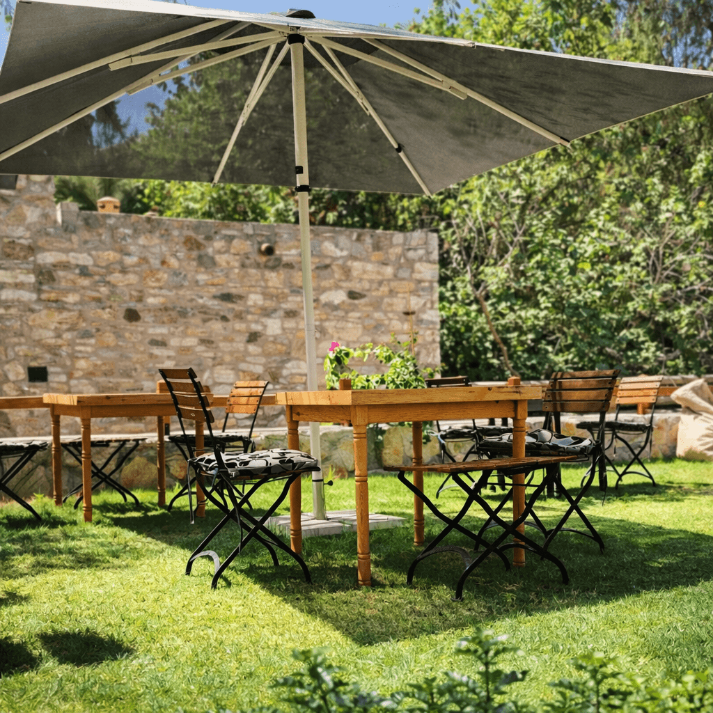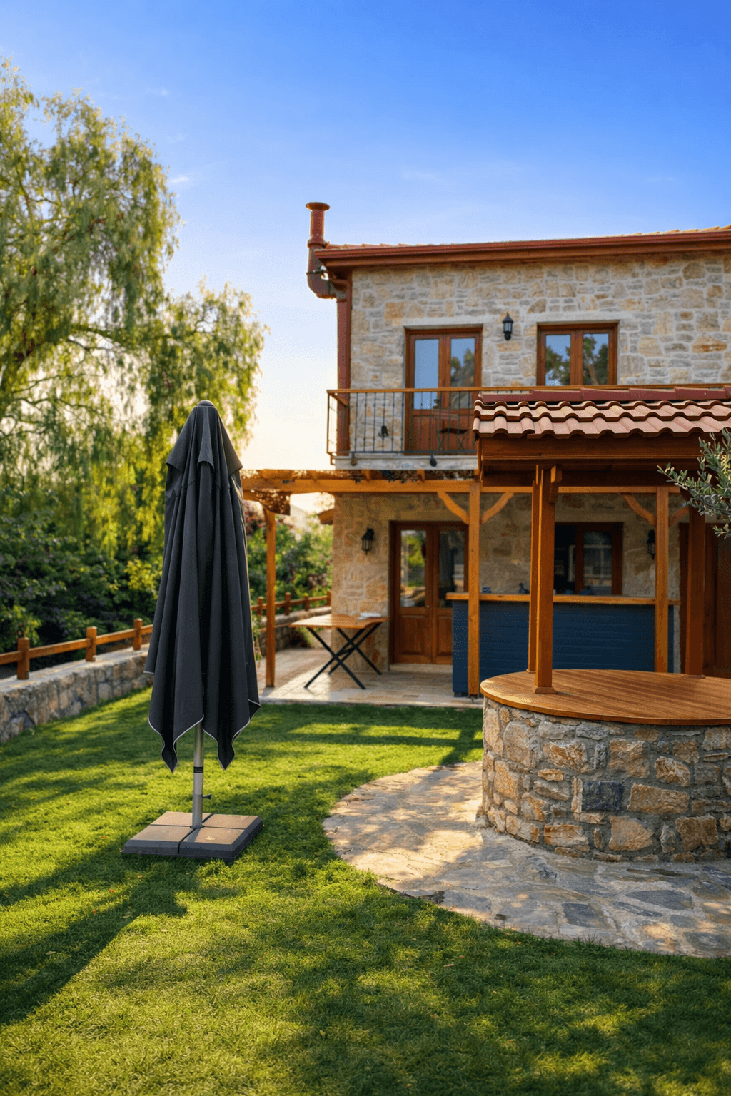 Datça’da konumlanan Feli Otel’in açık dinlenme alanlarında, geniş açıklıkta etkili gölgelendirme sağlamak amacıyla 50 Serisi – 300x300 Kare Şemsiye tercih edilmiştir. 50 mm çapındaki güçlü alüminyum orta borusu ve tamamı alüminyumdan oluşan taşıyıcı yapısı sayesinde şemsiye, Datça’nın rüzgâra açık ve yoğun güneş alan iklim koşullarında yüksek stabilite ve uzun ömürlü kullanım sunar. 300x300 cm kare ölçüsü, otel havuz çevresi ve geniş oturma alanlarında homojen ve kesintisiz bir gölge alanı oluşturarak misafir konforunu üst seviyeye taşır. Kilitlemeli açma-kapama sistemi ise günlük kullanımda güvenli ve pratik bir deneyim sağlar.