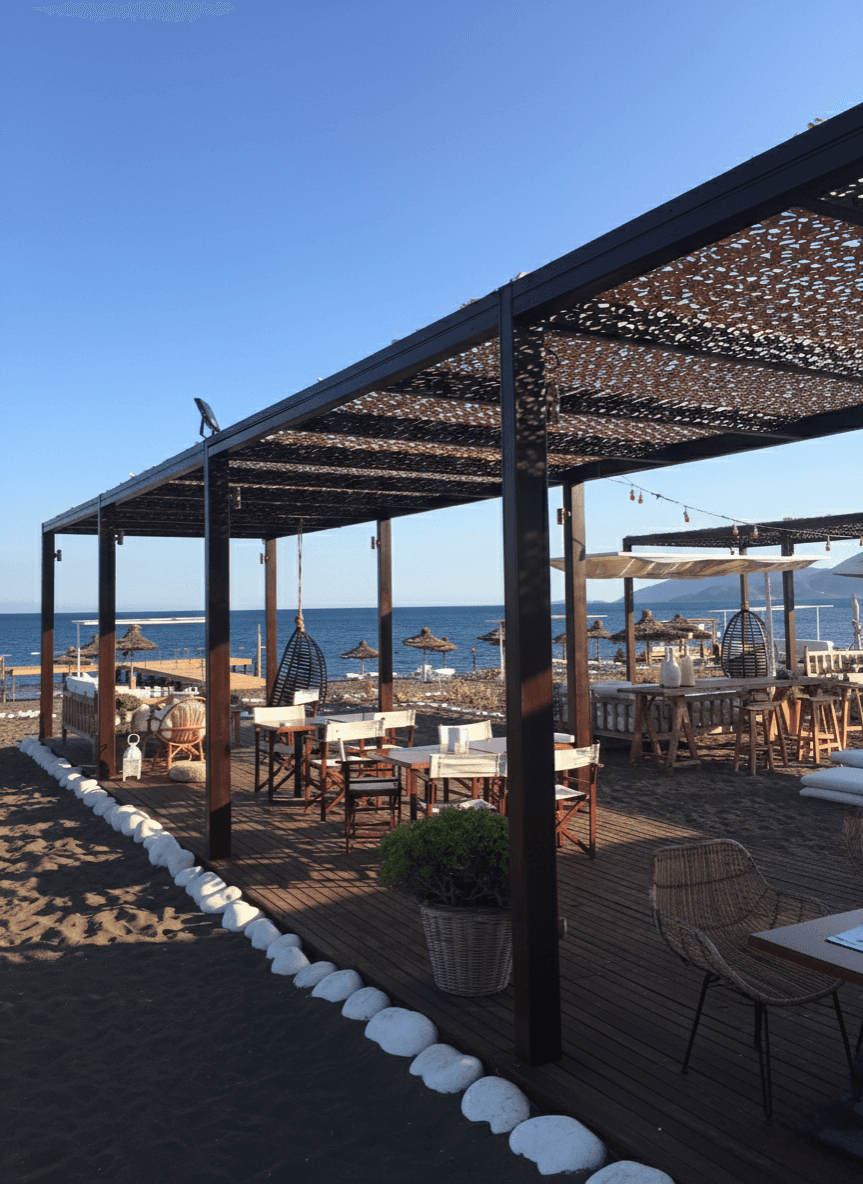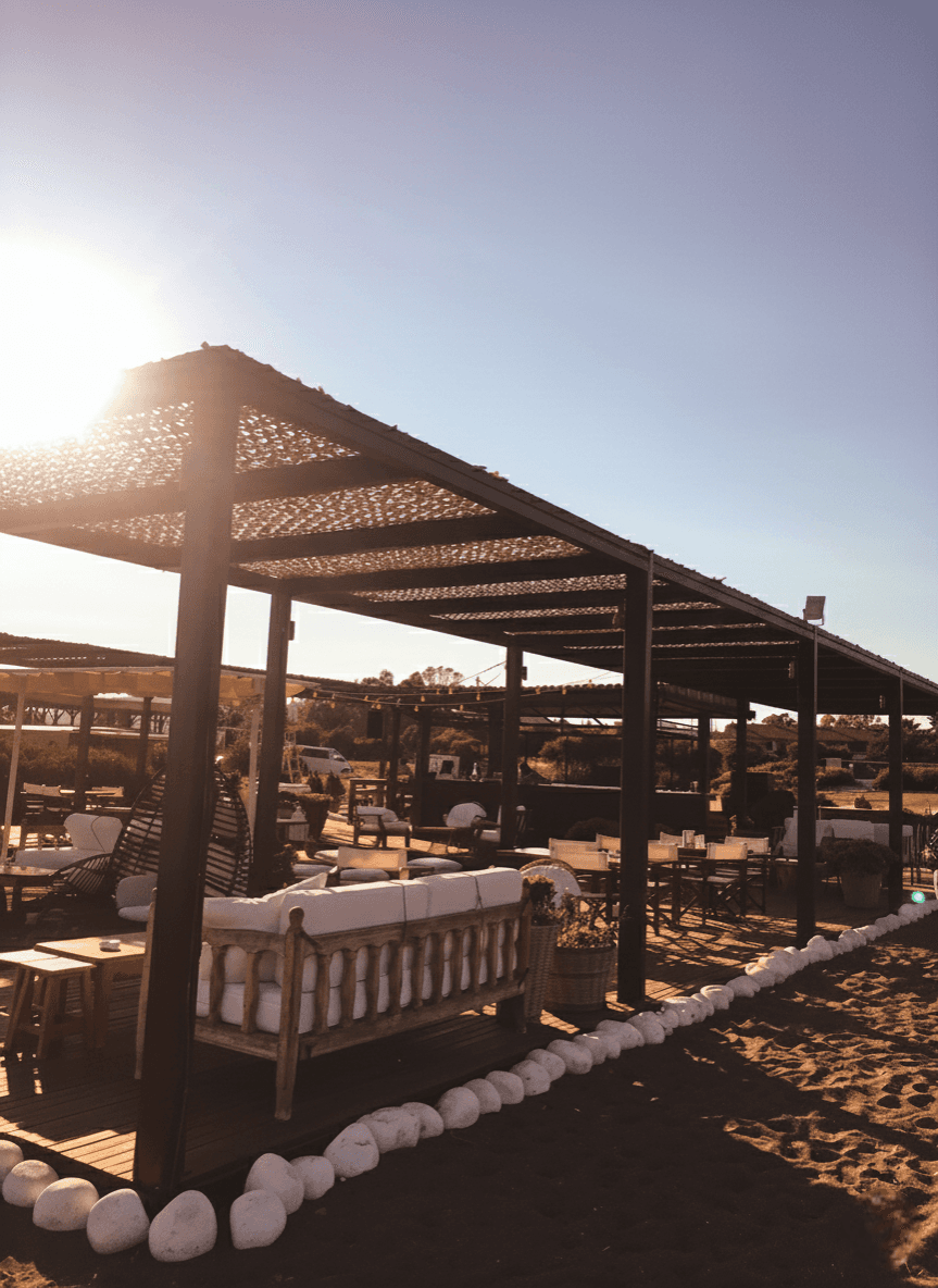 Datça’ nın Kızlan mevkiinde, sörf tutkunlarının uğrak noktası olan ve bölgenin kendine has rüzgarıyla tanınan Flow Datça için yüksek mukavemetli bir dış mekan çözümü sunduk. İşletmenin geniş kumsal ve restoran alanlarını, Sabit Tente yapısına entegre ettiğimiz Kamuflaj Tente modelimizle yeniledik. Datça’ nın sörf yapmaya imkan tanıyan o güçlü rüzgarları göz önüne alınarak geliştirilen lazer teknolojili özel "S" gözenekler, rüzgarın kumaşın içinden akıp gitmesini sağlar. Bu sistem rüzgar direncini minimuma indirerek yırtılma riskini tamamen ortadan kaldırır ve kumaşın hafif formunu korur. Mekanda basık bir tavan yerine; nefes alan, ferah veDatça’nın o eşsiz havasını kesmeyen yarı-gölgeli bir atmosfer yaratılmıştır.