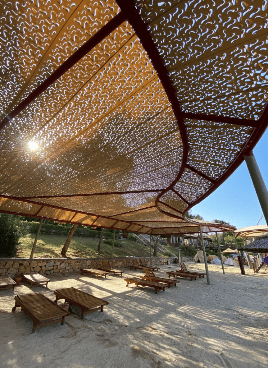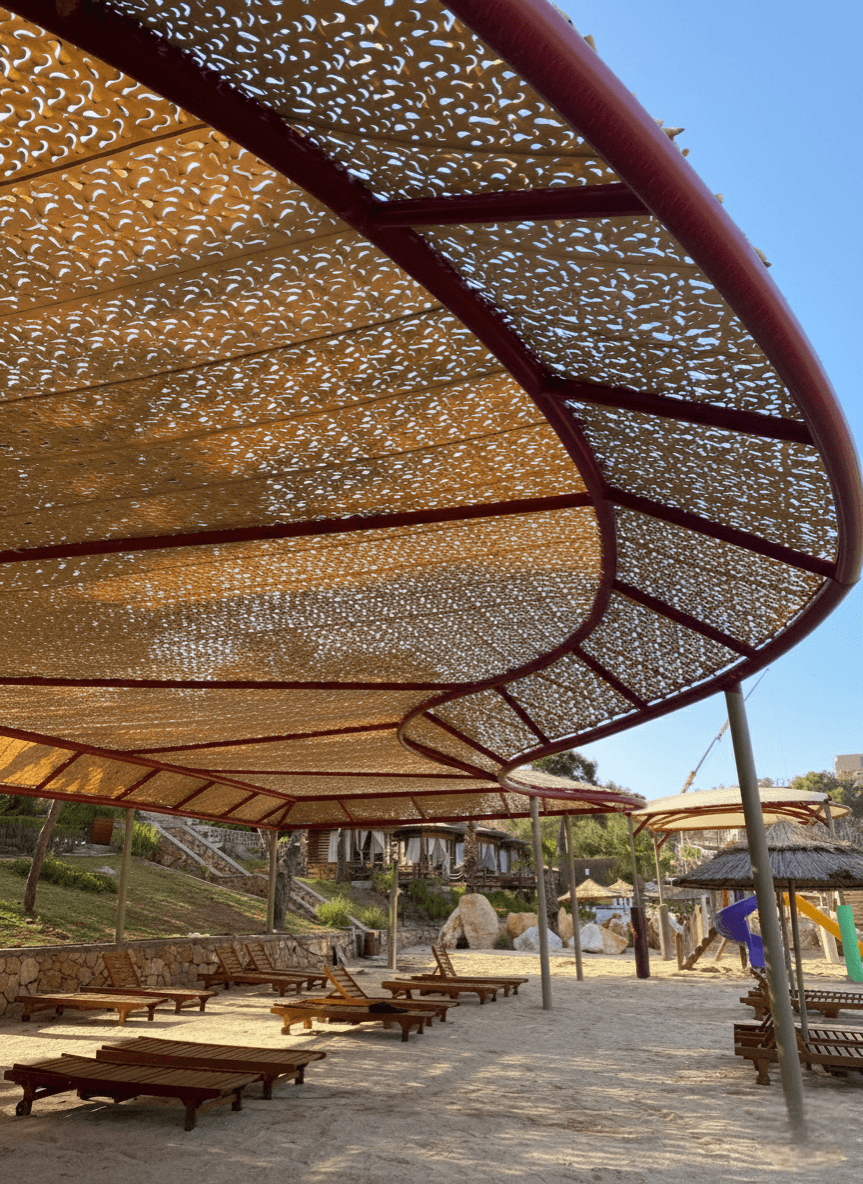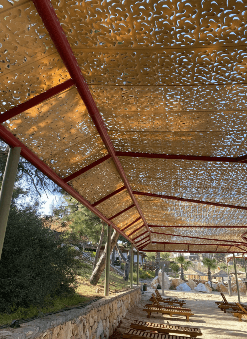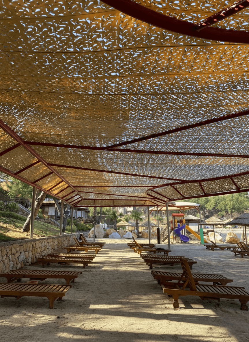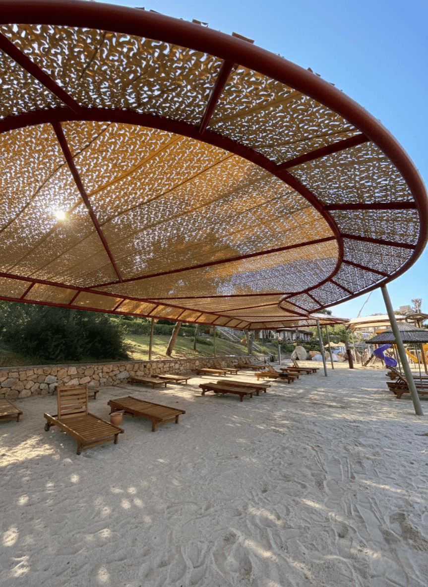 Bodrum’ un gün batımıyla ünlü sahil şeridinde yer alan La Blanche Resort & SPA, misafirlerine masalsı bir tatil deneyimi sunar. Otelin geniş dış mekan sosyal alanlarını ve dinlenme bölümlerini, Sabit Tente yapısına entegre ettiğimiz Kamuflaj Tente ürünümüzle ferah bir yaşam alanına dönüştürdük. Bodrum’ un rüzgarıyla meşhur sahil bandında, lazer teknolojisiyle milimetrik olarak açılan "S" kanalları rüzgarı tahliye ederek kumaşa binen yükü azaltır ve deformasyonu engeller. Geleneksel kapalı sistemlerin aksine bu model, mekanın boğucu olmasını önleyerek her daim nefes alan, yarı-gölgeli bir kullanım alanı sağlar.