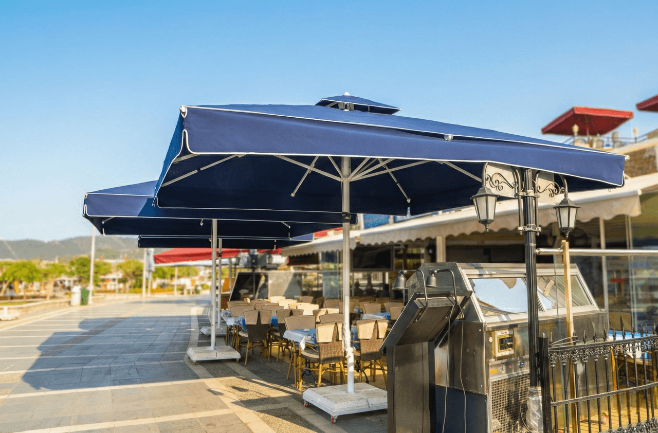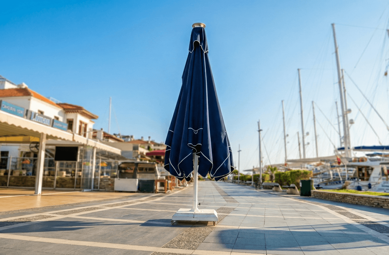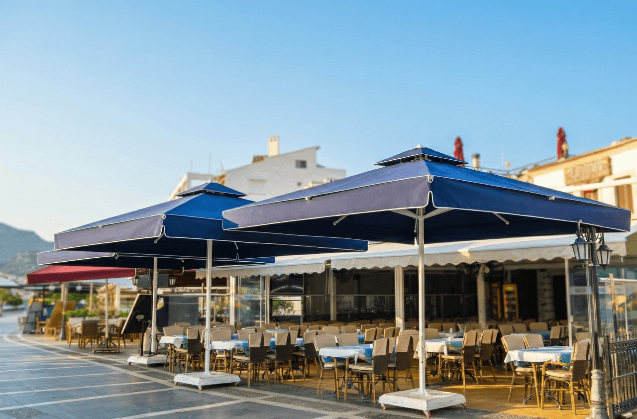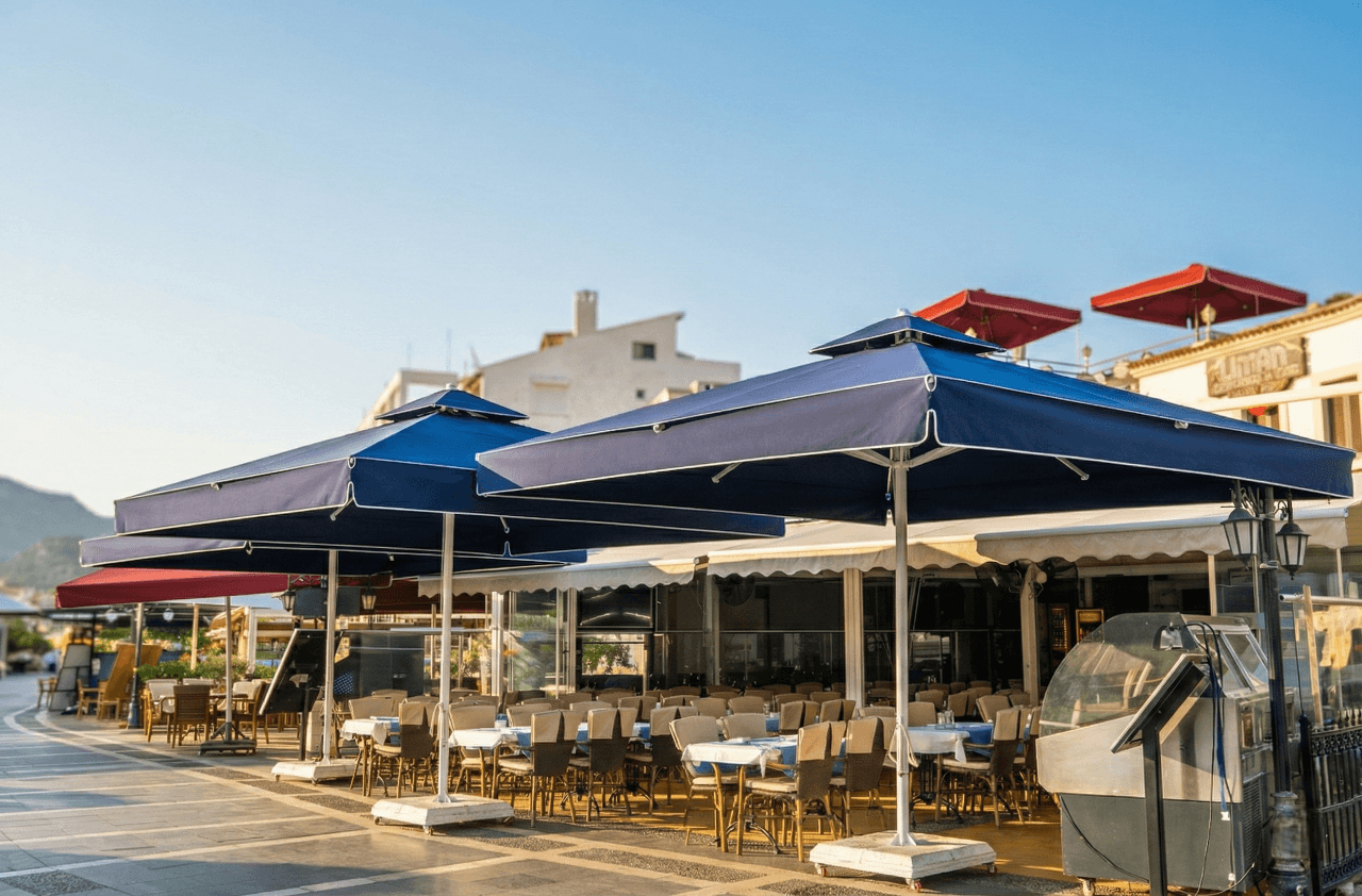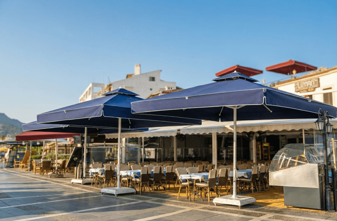 Bu projede tercih edilen Selçuk Tente 70 Serisi – 400×400 Kare Şemsiye, Liman Restaurant’ ın Marmaris’ teki sahil ve meydan konseptiyle uyum içinde; geniş alan kapsaması, servis konforu ve uzun ömürlü performansı bir arada sunar.