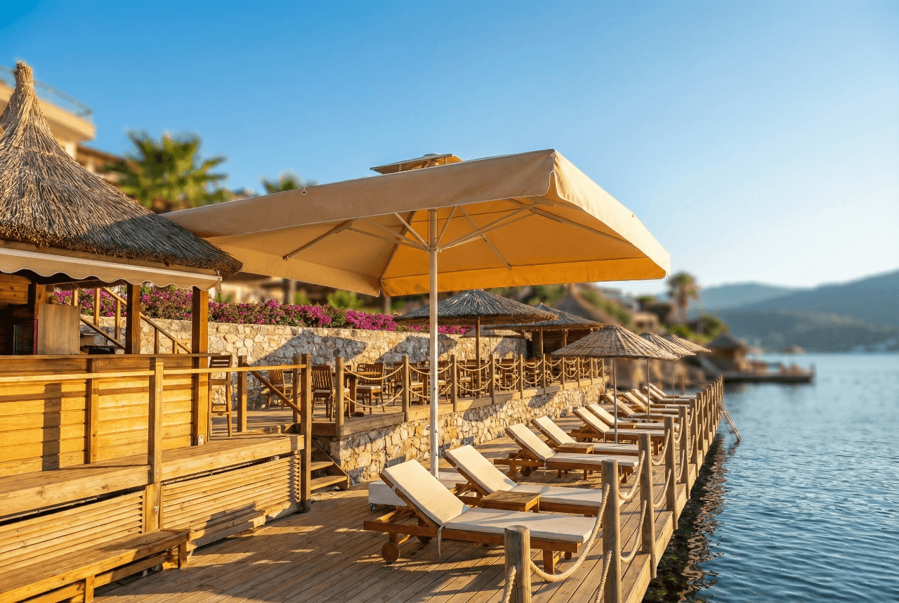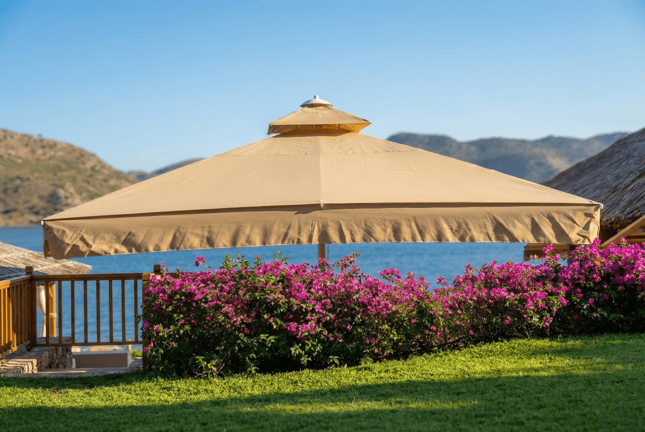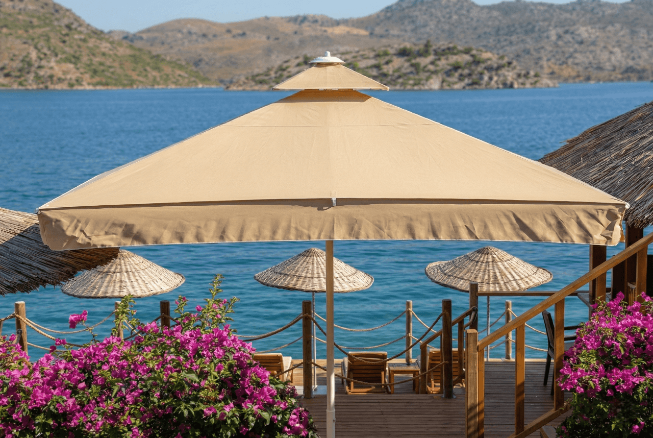 Bu projede tercih edilen Selçuk Tente 70 Serisi – 400×400 Kare Şemsiye, Loryma Otel’in Bozburun’daki açık alan konseptiyle uyum içinde; geniş alan kapsaması, misafir konforu ve uzun ömürlü performansı bir arada sunar.