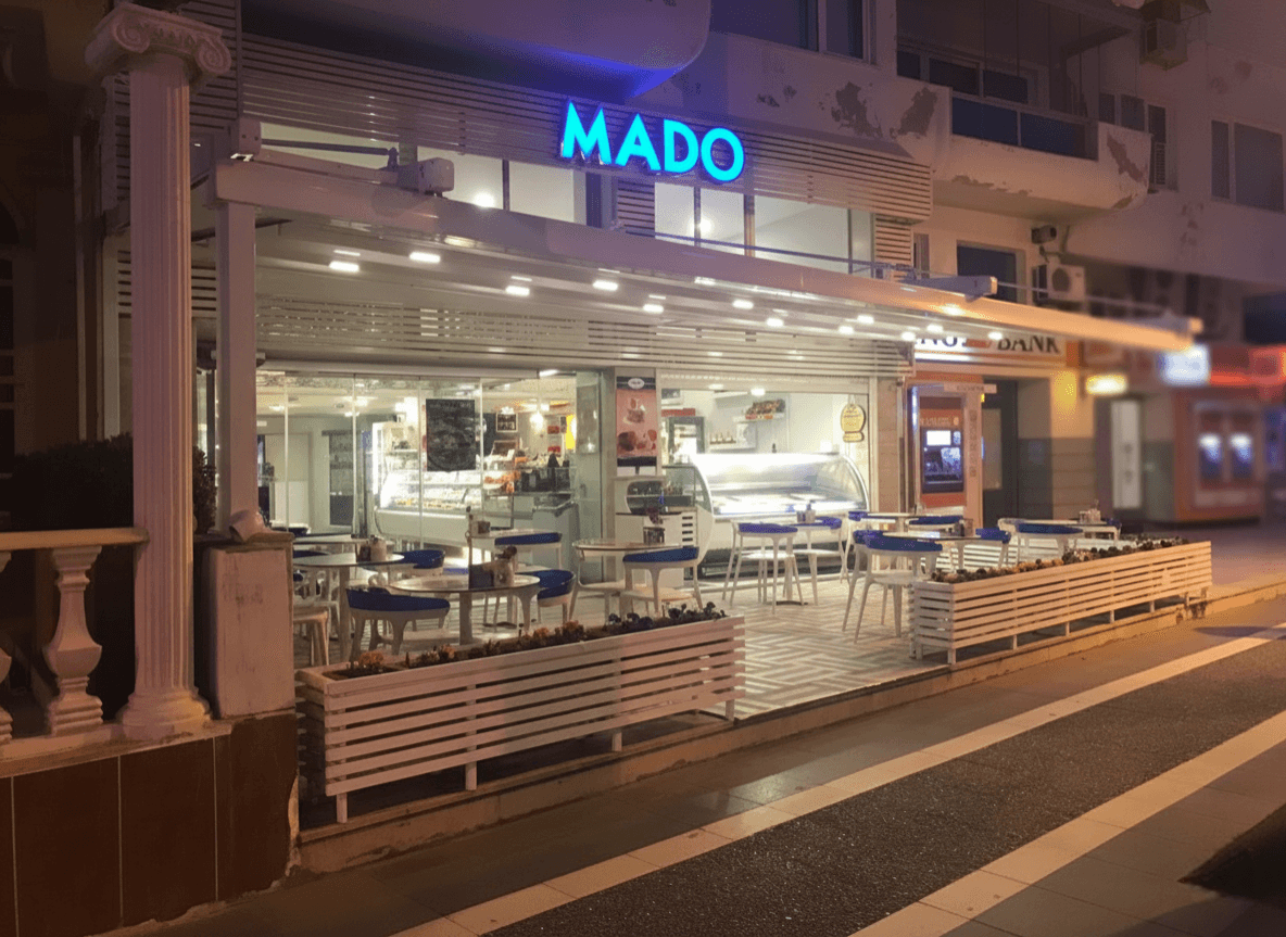 • Askılı Sistem ile Kesintisiz Sahil Ferahlığı: Mado’nun cephesinde yaya trafiğini engellememek ve zeminde ayak kalabalığı yaratmamak için özel askılı sistem kullanılmıştır; bu sayede mekanın önü tamamen açık kalarak Marmaris’in o ferah sahil havası içeriye kesintisiz davet edilmiştir.