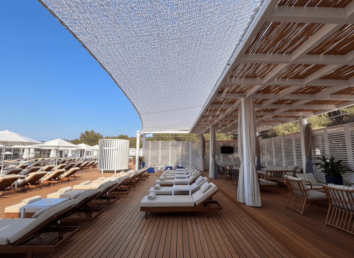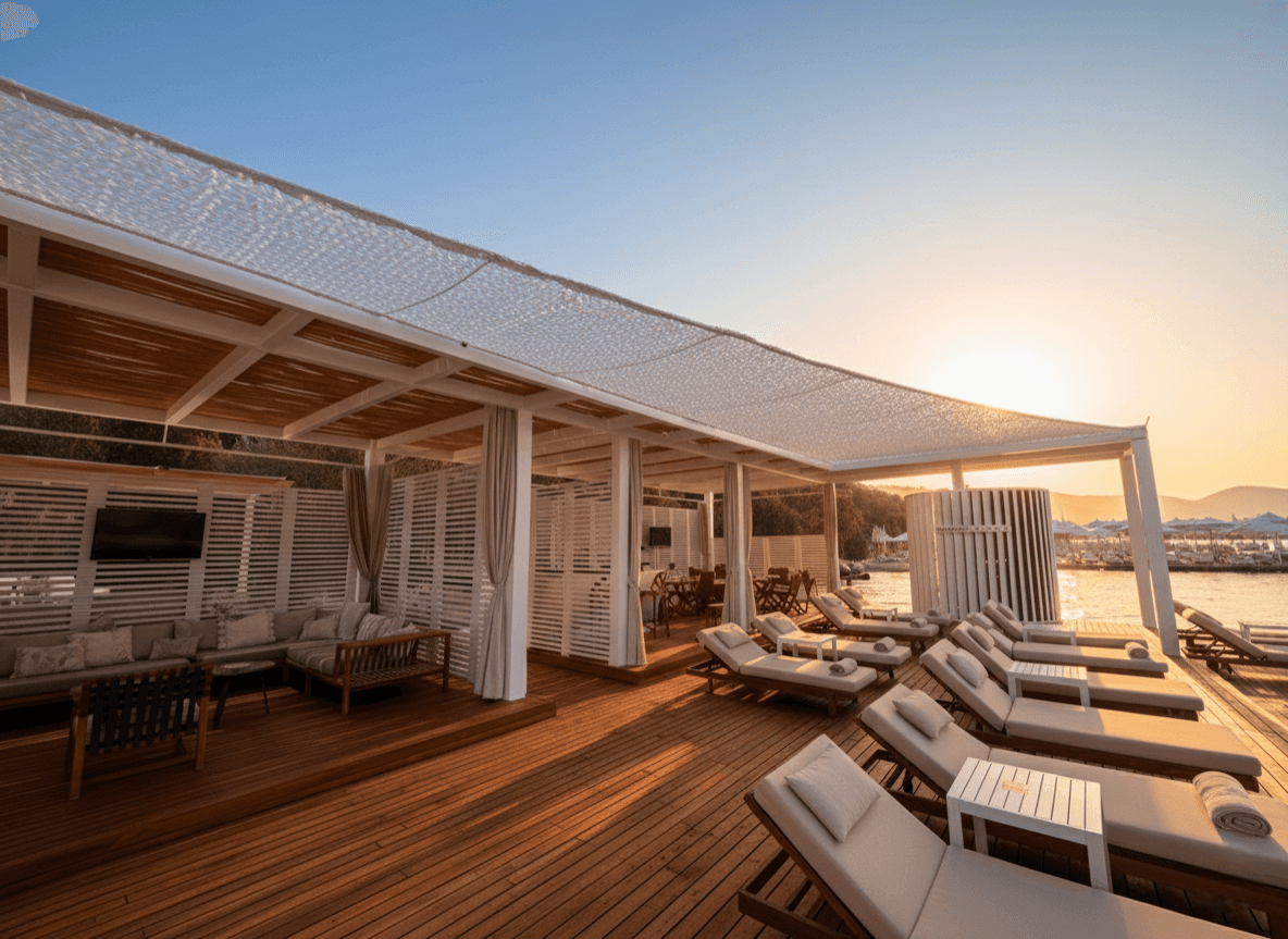 Mandarin Oriental - Bodrum Bodrum’ un büyüleyici atmosferinde, estetik ve lüksün buluşma noktası olan Mandarin Oriental için, mekanın seçkin ruhunu yansıtan mimari bir gölgelendirme projesine imza attık. Bodrum’ un ikonik beyaz mimarisiyle bütünleşmesi amacıyla, bu projede Yarasa Tente sistemimizi kamuflaj kumaş tercihiyle hayata geçirdik. Bu özel tasarım, Mandarin’ in dış mekanlarına sadece ferah bir gölge alanı kazandırmakla kalmıyor, aynı zamanda modern bir sanat eseri gibi mekana görsel bir derinlik katıyor. Beyaz kamuflaj kumaşın delikli yapısı sayesinde, güneşin yakıcı etkisi kırılırken Bodrum’un o eşsiz ışığı yumuşatılarak mekana dağıtılıyor. Selçuk Tente kalite farkıyla kurgulanan bu sistemde, estetiği sarsılmaz bir teknik altyapıyla mühürledik: