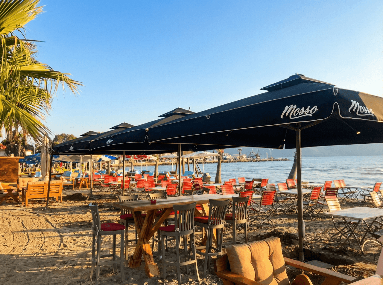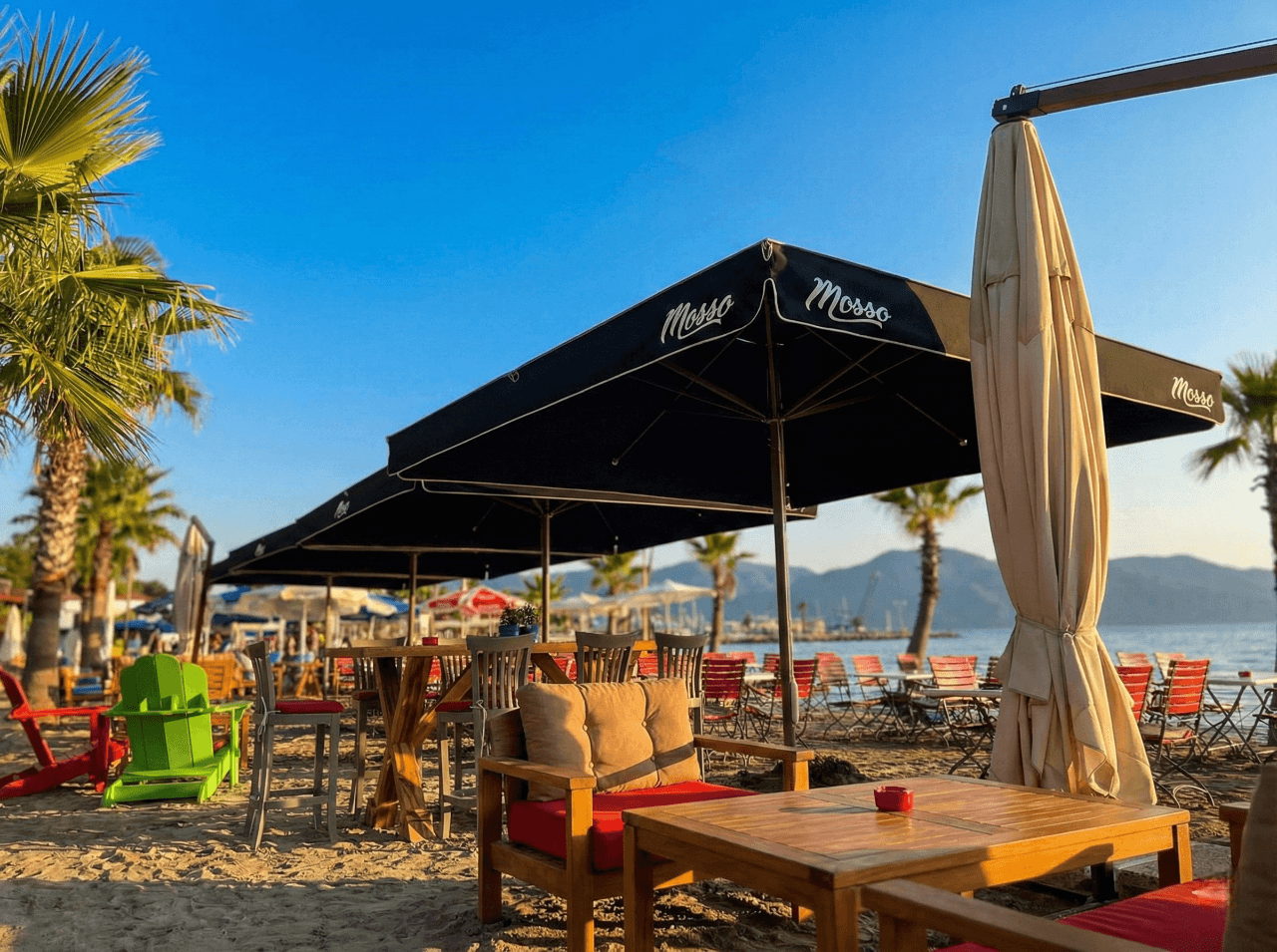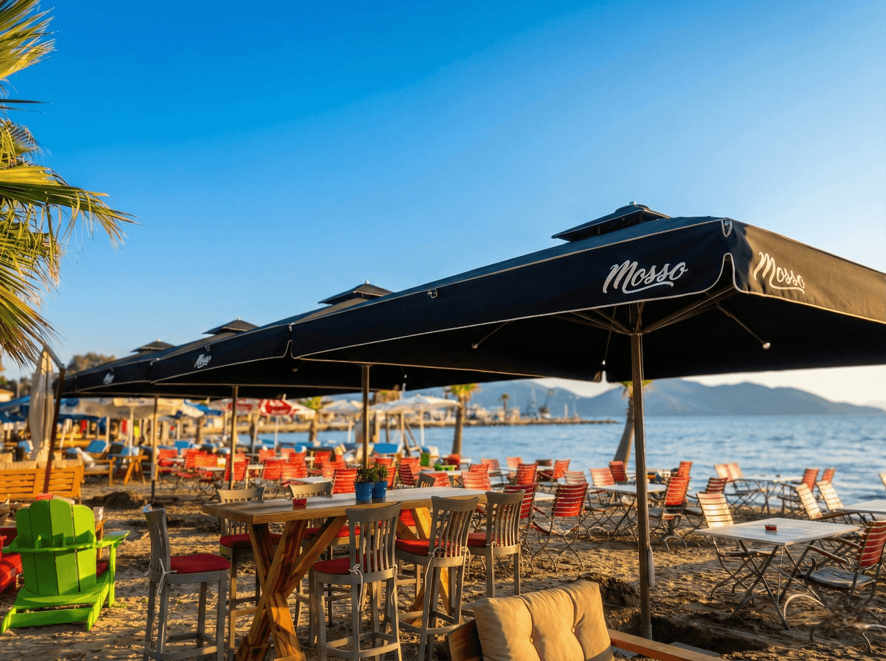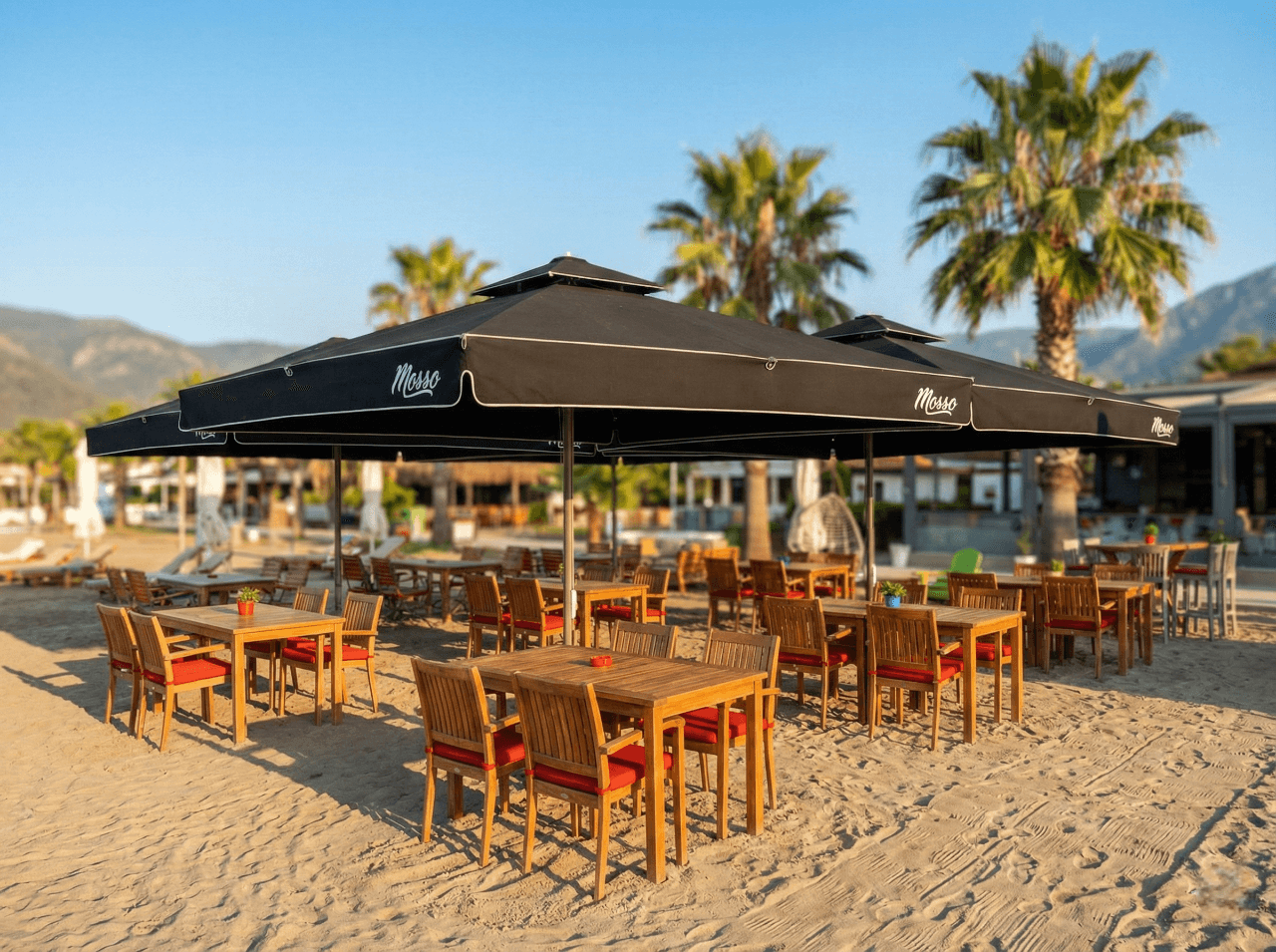Akyaka’nın doğal dokusu ve sakin atmosferiyle uyumlu bir konumda yer alan Mosso, açık alanlarında ferahlık ve konforu ön planda tutan bir mekân anlayışı sunuyor. Bahçe ve dış oturma alanlarında tercih edilen 70 Serisi – 400×400 Kare Şemsiye, geniş kare formu sayesinde masa düzenlerini tek bir gölgelendirme altında toplayarak düzenli ve dengeli bir kullanım alanı oluşturuyor. Gün boyu değişen güneş açılarına karşı homojen gölge sağlayarak misafirlerin açık havada keyifle vakit geçirmesine olanak tanıyor. 70 mm çapındaki güçlü orta borusu ve alüminyum taşıyıcı yapısıyla öne çıkan 70 Serisi, Akyaka’nın açık alan koşullarına uygun stabil duruşu ve uzun ömürlü performansıyla dikkat çekiyor. Teleskopik kapanma özelliği sayesinde şemsiye kapatılırken masa ve mobilyalara temas etmeden pratik bir kullanım sunulurken; palanga sistemli açma-kapama mekanizması işletme ekibi için sessiz, kontrollü ve zahmetsiz bir operasyon avantajı sağlıyor. Mosso’nun doğal ve sade konseptiyle uyumlu, güçlü ama yalın bir dış mekân çözümü olarak öne çıkıyor. Bu projede tercih edilen Selçuk Tente 70 Serisi – 400×400 Kare Şemsiye, Mosso’nun Akyaka’daki açık alan konseptiyle uyum içinde; geniş alan kapsaması, kullanıcı konforu ve uzun ömürlü performansı bir arada sunar.