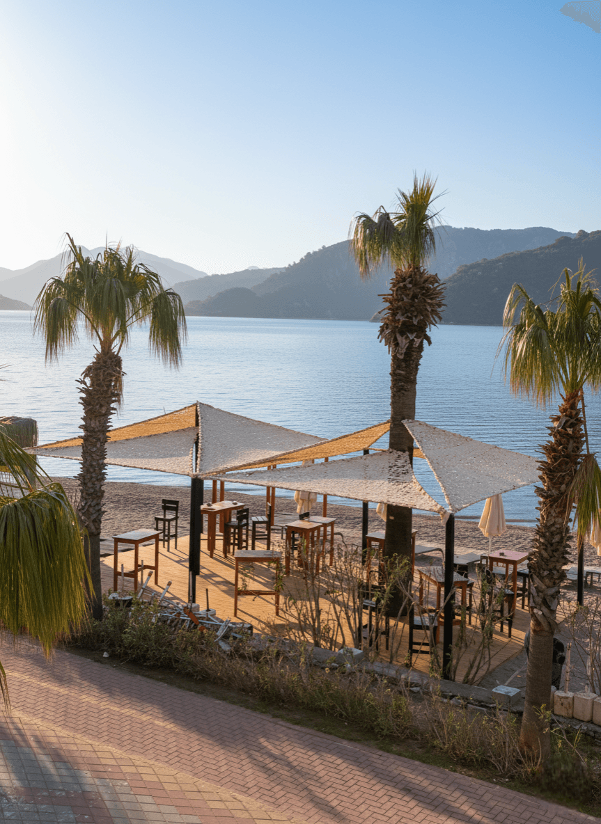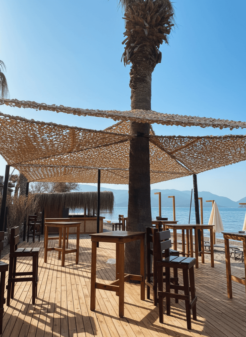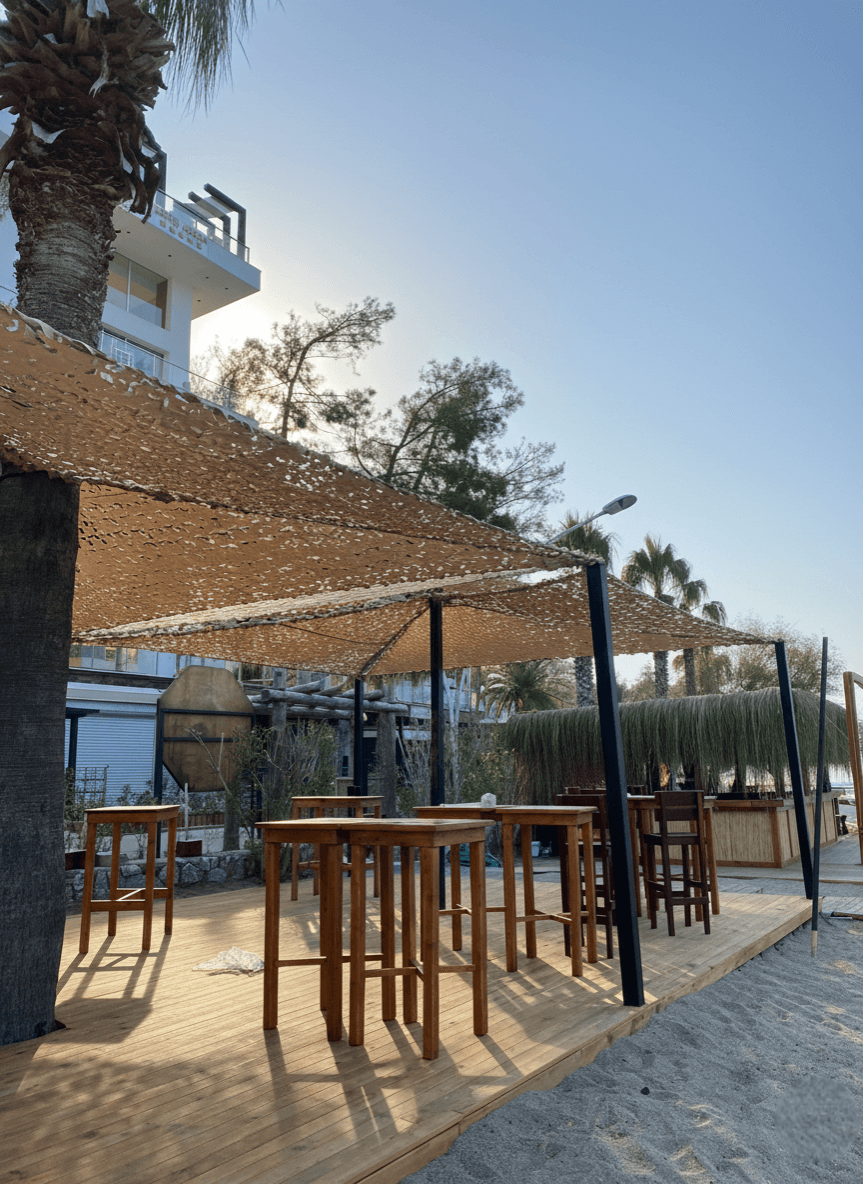 Marmaris İçmeler mevkii ile Siteler arasında, çam ağaçlarının denizle buluştuğu eşsiz bir koyda yer alan Orka Lotus Beach, misafirlerine doğanın kalbinde ultra lüks bir tatil deneyimi sunmaktadır. Tesisin geniş sahil bandı, iskele ve açık hava sosyal alanları için, otelin modern ve organik mimari dokusunu destekleyen Sabit Tente üzerine Kamuflaj Tente sistemimizi hayata geçirdik. Koyun kendine has mikrokliması ve denizden gelen imbat esintileri göz önüne alınarak tasarlanan lazer teknolojili özel "S" gözenekler, rüzgarın kumaşın içinden direnç oluşturmadan akıp gitmesini sağlar. Bu mühendislik çözümü, rüzgar yükünü minimuma indirerek yırtılma riskini tamamen ortadan kaldırırken, kumaşın o hafif ve asil formunu her daim korur. Mekanda basık bir tavan yerine; çam iğnelerinin arasından süzülen güneş ışığını andıran, nefes alan, ferah ve derinlik hissi veren yarı-gölgeli bir atmosfer yaratılmıştır.