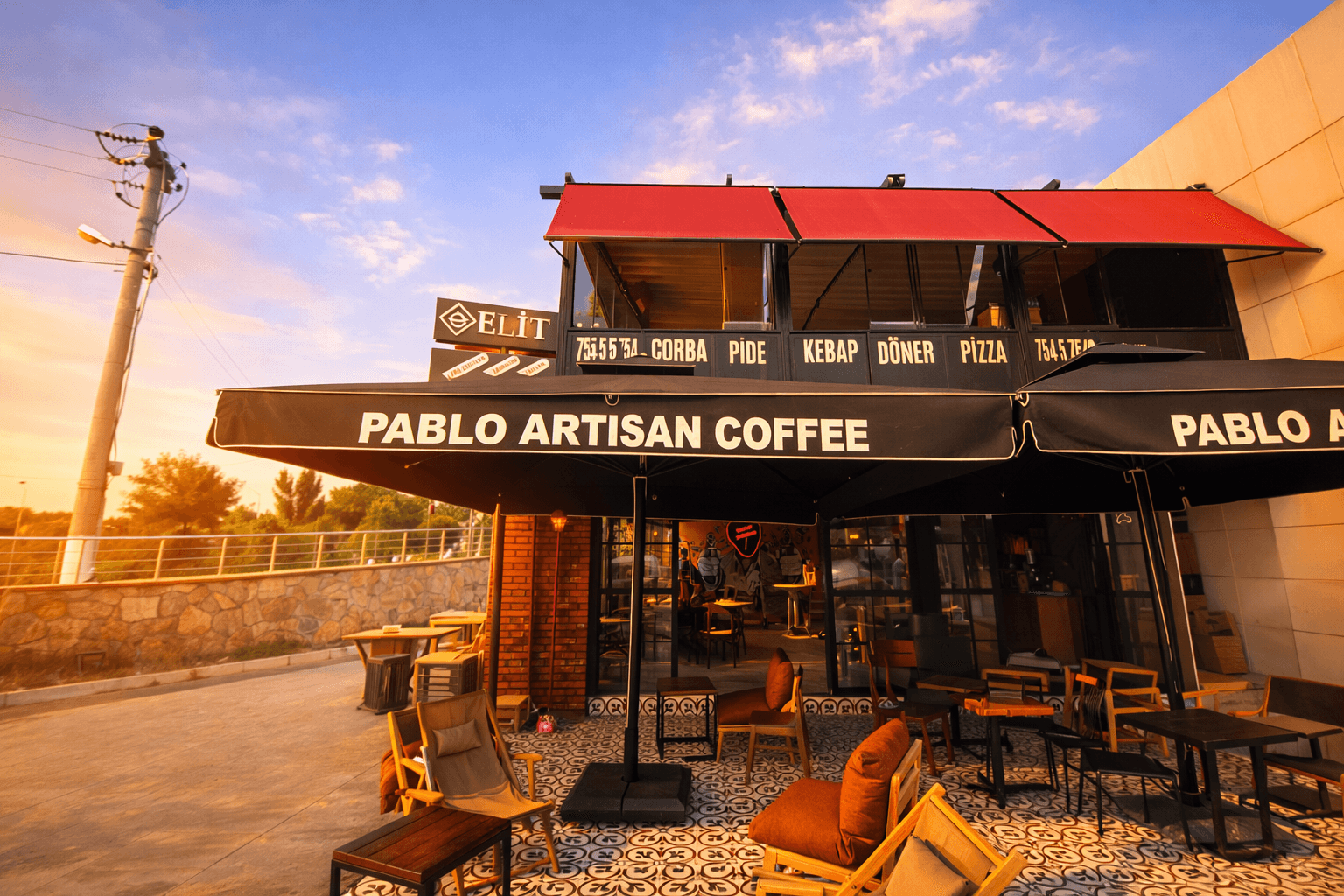 Bu projede tercih edilen Selçuk Tente 70 Serisi – 400×400 Kare Şemsiye, Pablo Artisan Cafe’ nin Urla’ daki doğayla bütünleşen açık alan konseptiyle uyum içinde; geniş alan kapsaması, kullanıcı konforu ve uzun ömürlü performansı bir arada sunar.