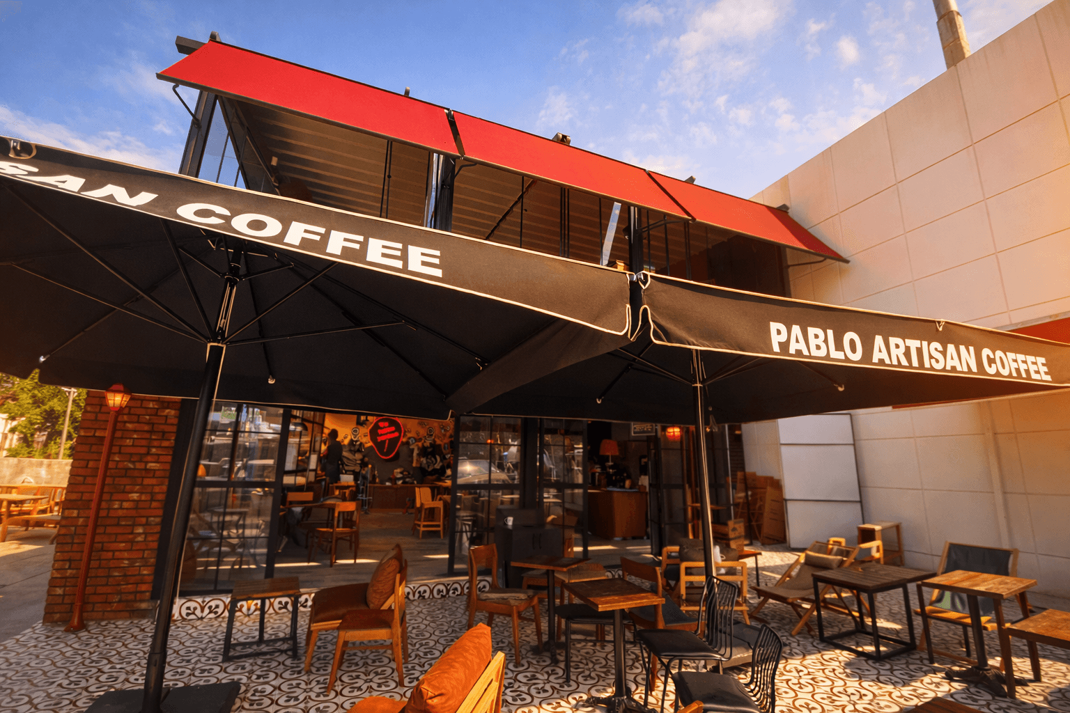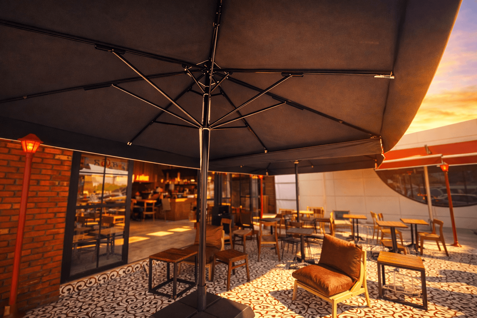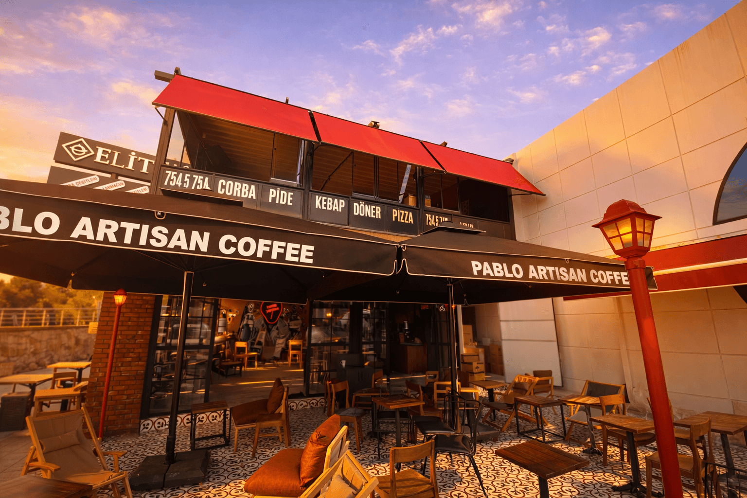 Urla’nın doğayla iç içe, sakin ve rafine atmosferinde konumlanan Pablo Artisan Cafe, açık alanlarında konforu ve mekânsal bütünlüğü ön planda tutan bir yerleşim sunar. Teras ve bahçe alanlarında tercih edilen 70 Serisi – 400×400 Kare Şemsiye, geniş kare formu sayesinde çoklu masa düzenlerini tek bir gölgelendirme altında toplayarak ferah ve dengeli bir kullanım alanı oluşturur. Gün boyu değişen güneş açılarına karşı homojen gölge sağlayarak misafirlerin açık havada keyifli vakit geçirmesine olanak tanır. 70 mm çapındaki güçlü orta borusu ve alüminyum taşıyıcı yapısıyla öne çıkan 70 Serisi, açık arazi koşullarına uygun stabil duruşu ve uzun ömürlü performansıyla dikkat çeker. Teleskopik kapanma özelliği, şemsiyenin kapatılırken masa ve mobilyalara temas etmeden pratik kullanım sunmasını sağlarken; palanga sistemli açma-kapama mekanizması işletme ekibi için sessiz, kontrollü ve zahmetsiz bir operasyon avantajı sağlar. Pablo Artisan Cafe’ nin doğal ve modern konseptiyle uyumlu, güçlü ama sade bir dış mekân çözümü olarak konumlanır.
