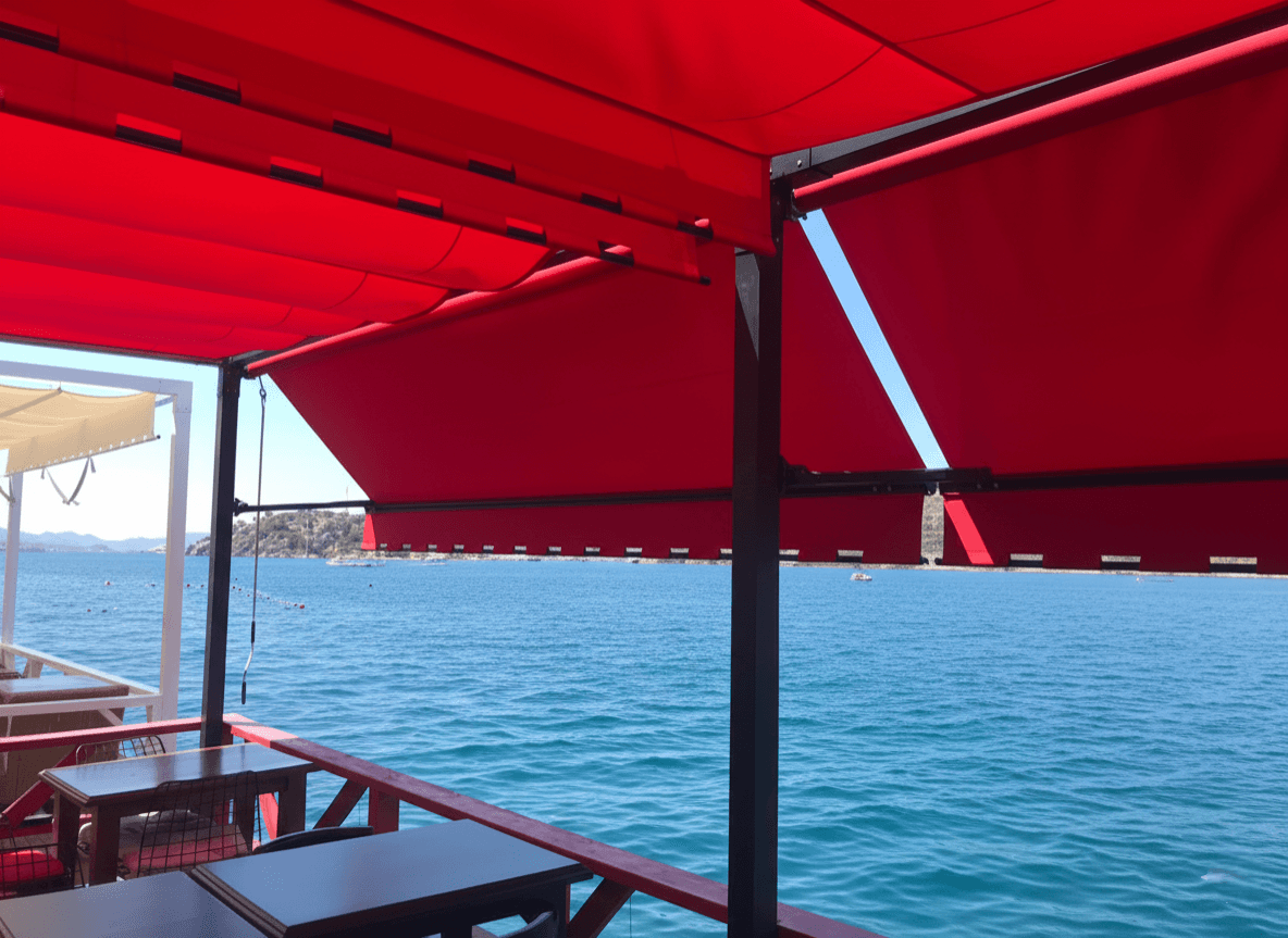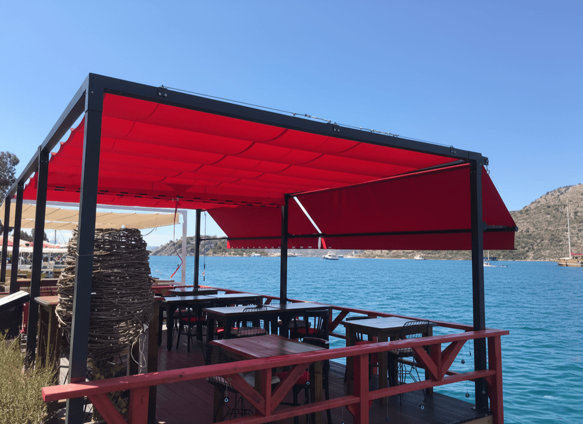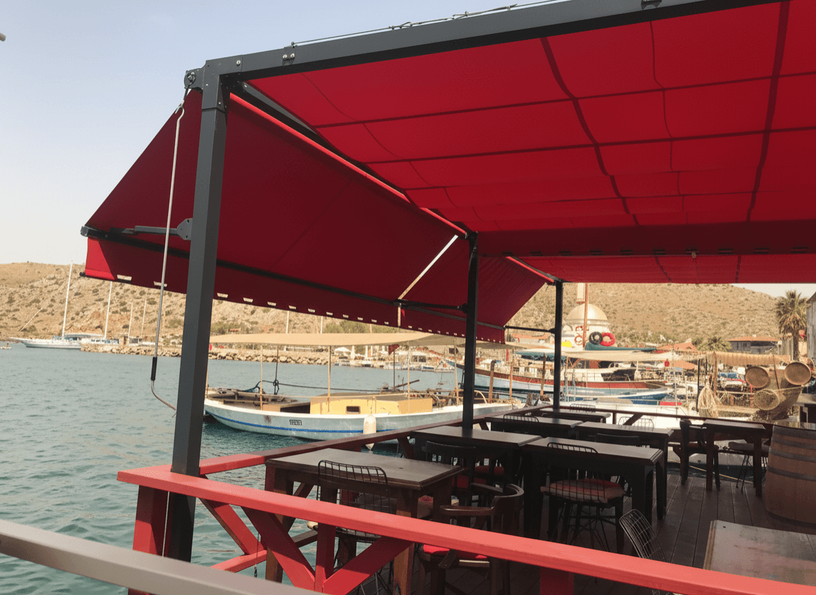 • Rüzgara Karşı Üstün Mukavemet: Bozburun sahil şeridinin değişken rüzgar yüküne karşı, klasik mafsallı tentelere oranla çok daha stabil ve dayanıklı bir yapı sunan Pente iskelet sistemi güvenli bir kullanım sunmaktadır.