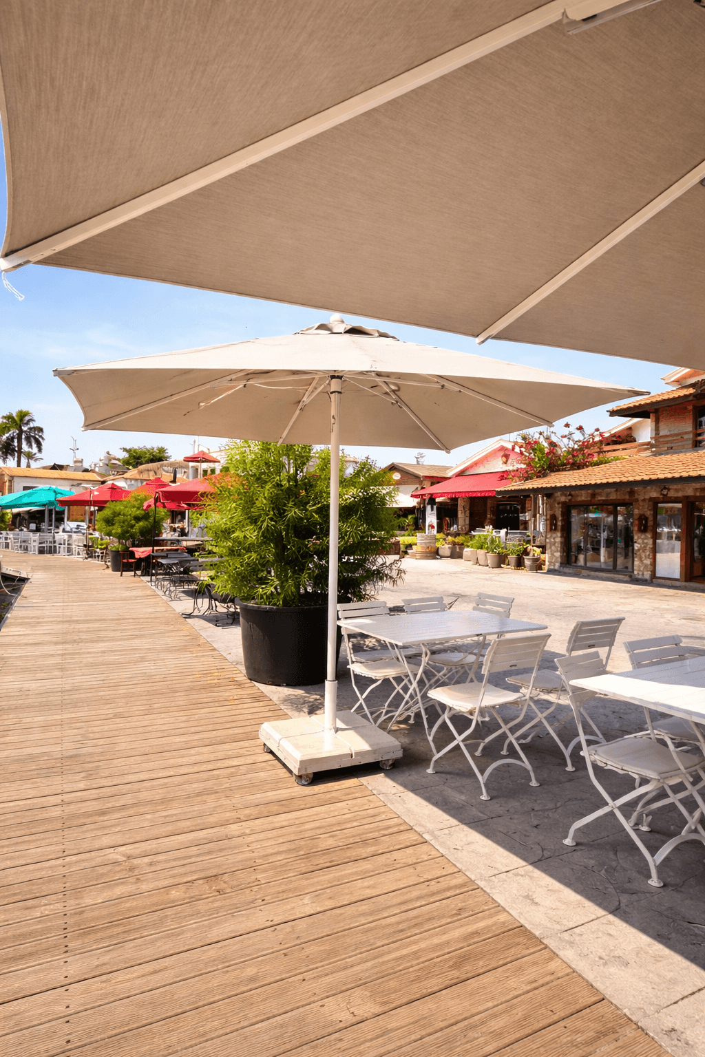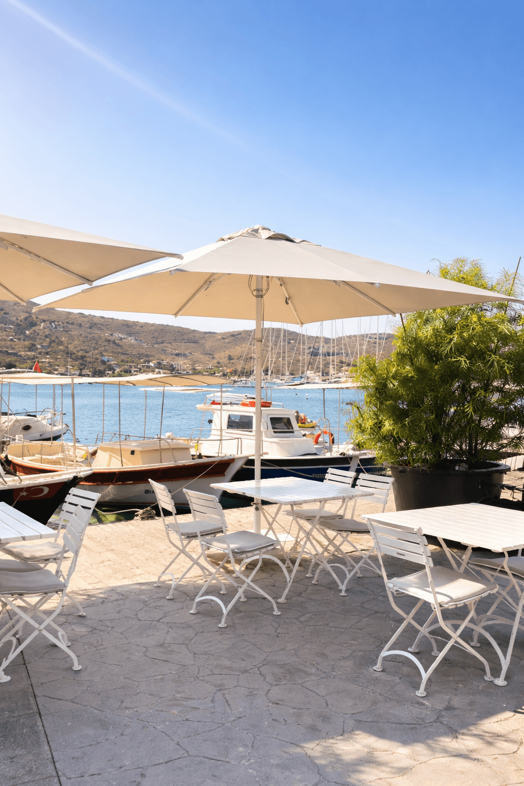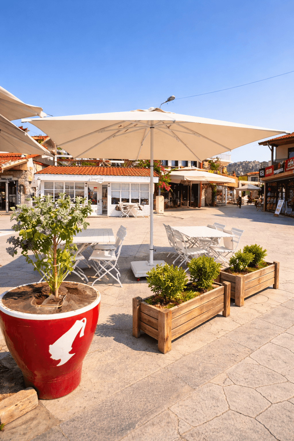 Selimiye’nin marinaya açılan ferah sahil hattında konumlanan Paprika – Selimiye, gün boyu yoğun güneş alan açık oturma alanlarında konforu ve estetik bütünlüğü korumak amacıyla Selçuk Tente 50 Serisi 300x300 Kare Şemsiye sistemini tercih etmiştir. Denizle iç içe bu özel lokasyonda, rüzgâr ve güneş dengesini doğru kuran profesyonel bir gölgelendirme çözümü kritik önem taşır.