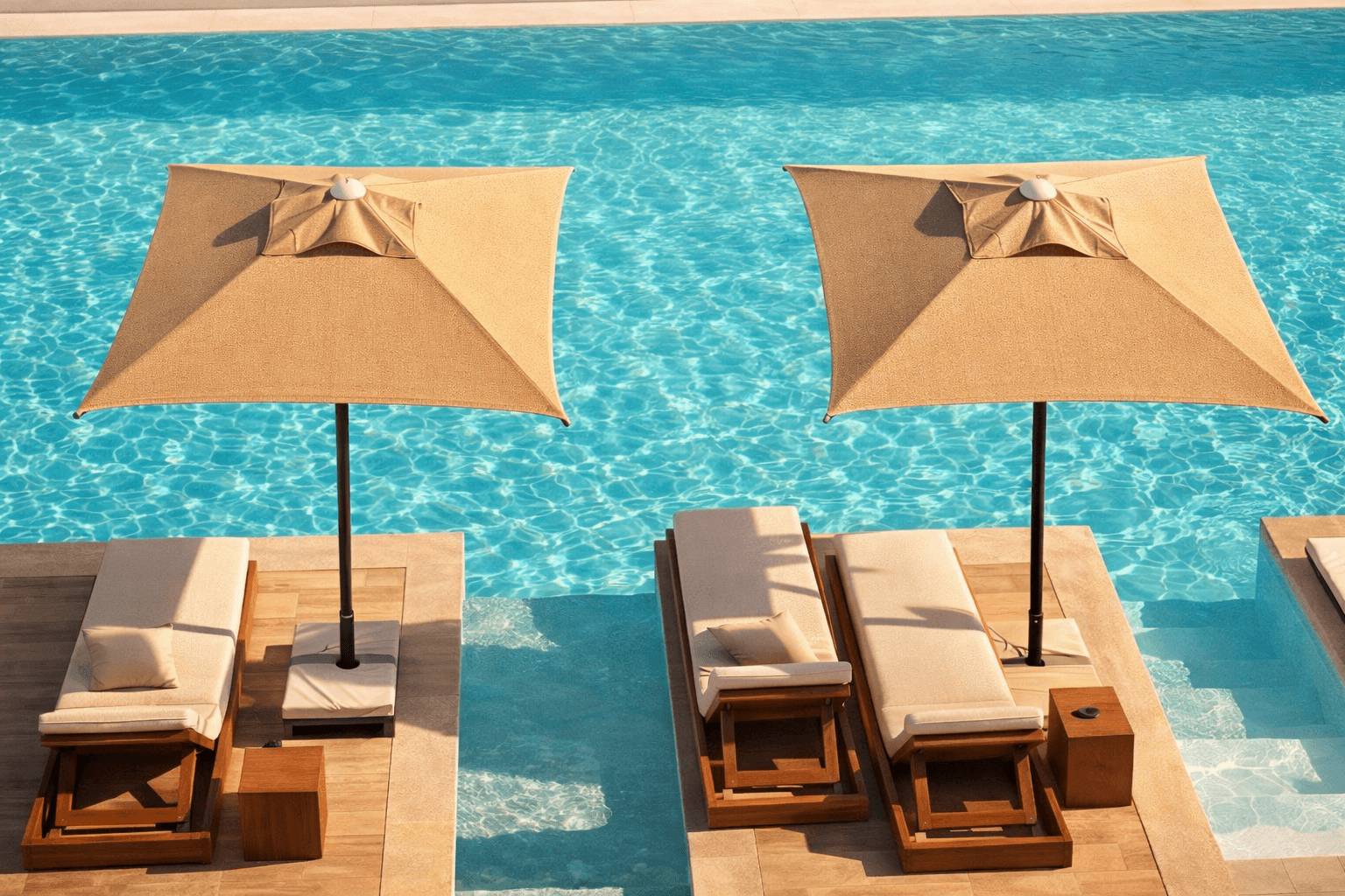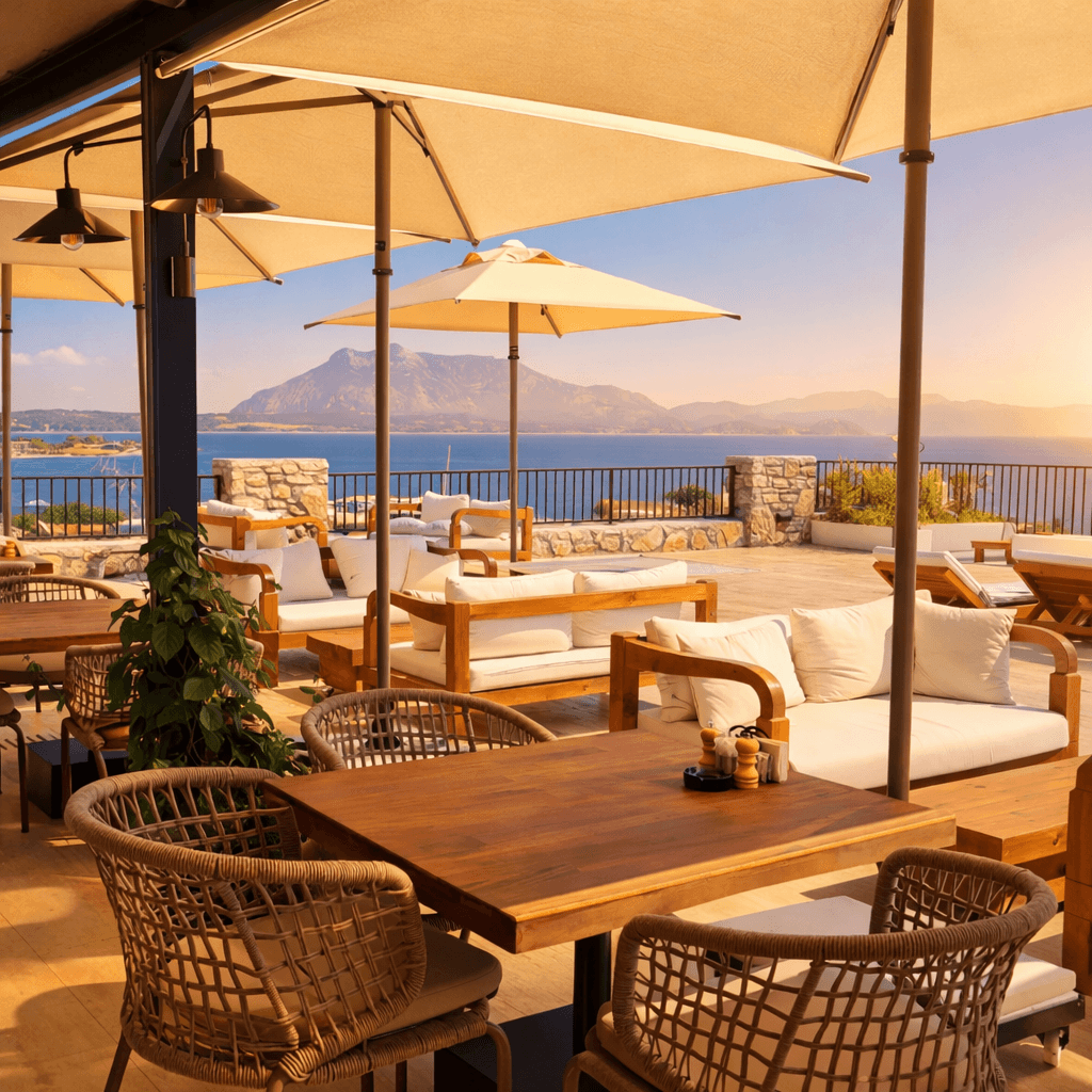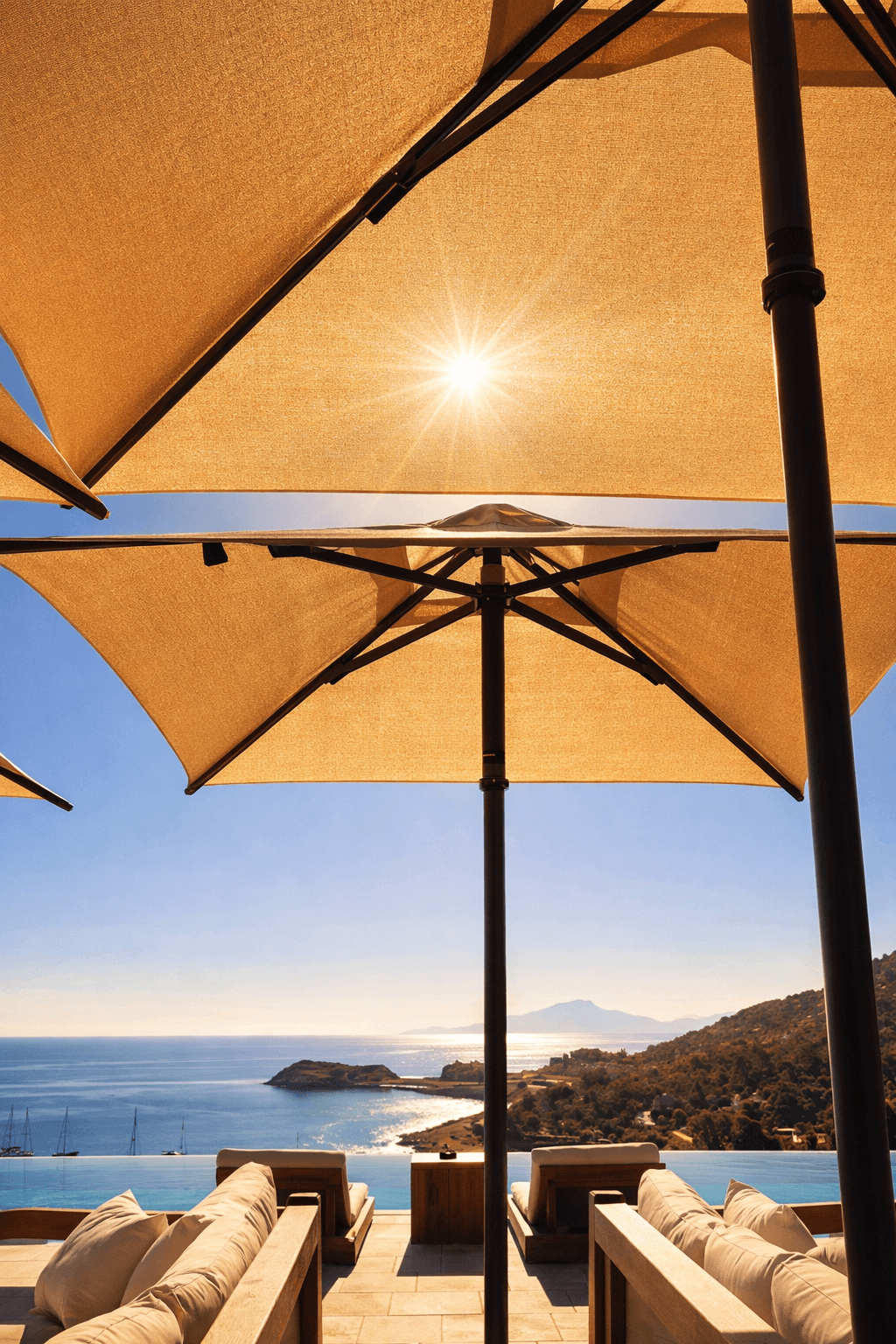 Denizle iç içe konumlanan Pier Marin’de kullanılan 50 Serisi 200x200 Kare Şemsiye, iskele ve sahil alanlarında hem fonksiyonel hem de görsel olarak güçlü bir gölgelendirme çözümü sunar.