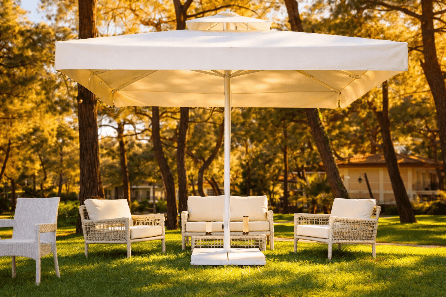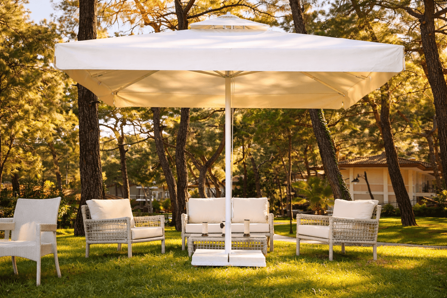 Selçuk Tente 70 Ser.s. – 300×300 Kare Şems.ye, dengel. gölgelend.rme, güçlü taşıyıcı yapı ve uzun ömürlü kullanım avantajlarını b.r arada sunan profesyonel b.r dış mekân çözümüdür.