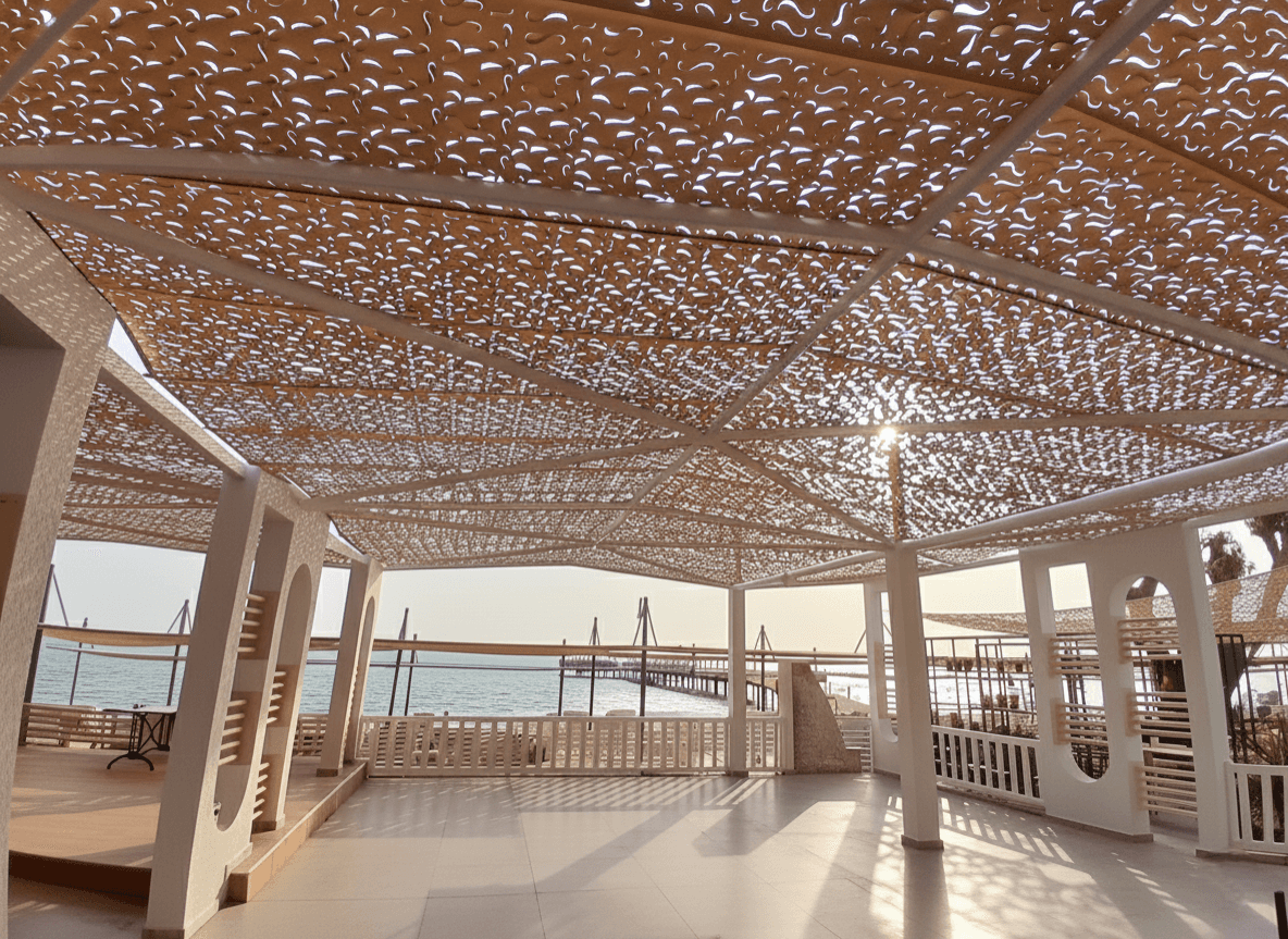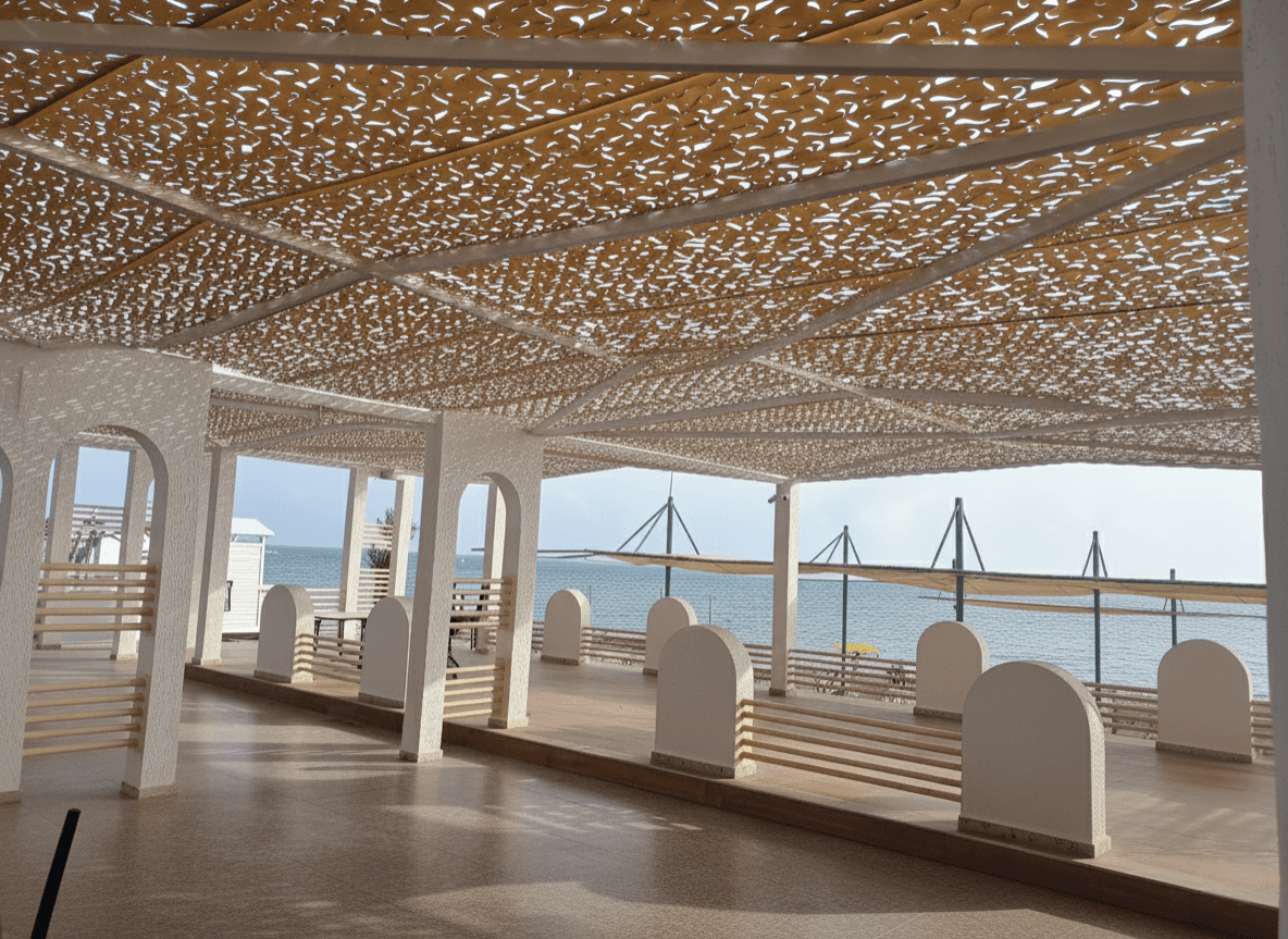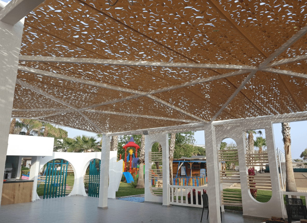 Side Mare Resort & Spa - Antalya (Side) Antalya Side’ nin tarihi dokusu ve masmavi deniziyle kucaklaşan Side Mare Resort, geniş misafir portföyüne konforlu bir tatil imkanı sunar. Otelin havuz başı ve açık hava etkinlik alanları için, Sabit Tente iskeleti üzerinde Kamuflaj Tente sistemimizi hayata geçirerek ferah bir yaşam alanı oluşturduk. Lazer teknolojisiyle milimetrik olarak açılan "S" kanalları, Akdeniz’in sıcak esintilerini kumaşa yük bindirmeden tahliye ederek sistem ömrünü uzatır ve rüzgar kaynaklı deformasyonları engeller. Geleneksel kapalı sistemlerin aksine bu model, ışık ve havanın içeride serbestçe dolaşımına izin vererek misafirlere nefes alan, derinlik katan ve her an ferah hissettiren bir gölge alanı sunar. Yılların tecrübesiyle şekillenen radansa bağlantıları ve emniyet kolonları, sistemin bölgenin değişken hava şartlarında bile stabil kalmasını sağlar. Kurulum aşamasında; radansalı, vidalamalı ve çelik halat bağlama ile gerdirmeli yöntemlerimiz uygulanarak yapının uzun ömürlü kullanımı garanti altına alınmıştır.