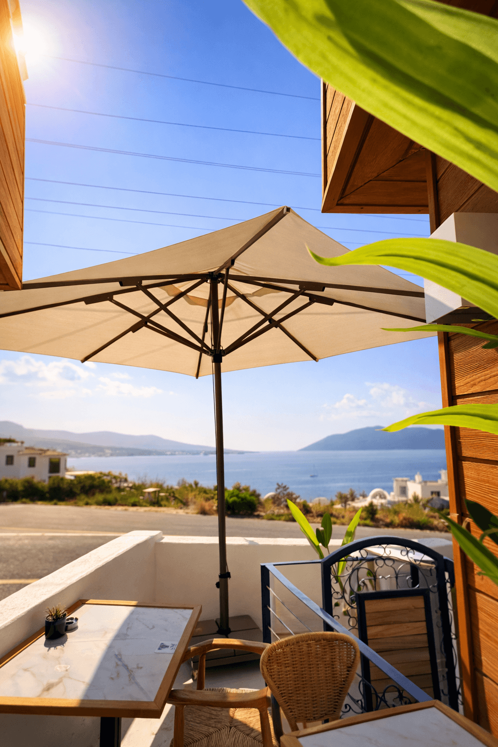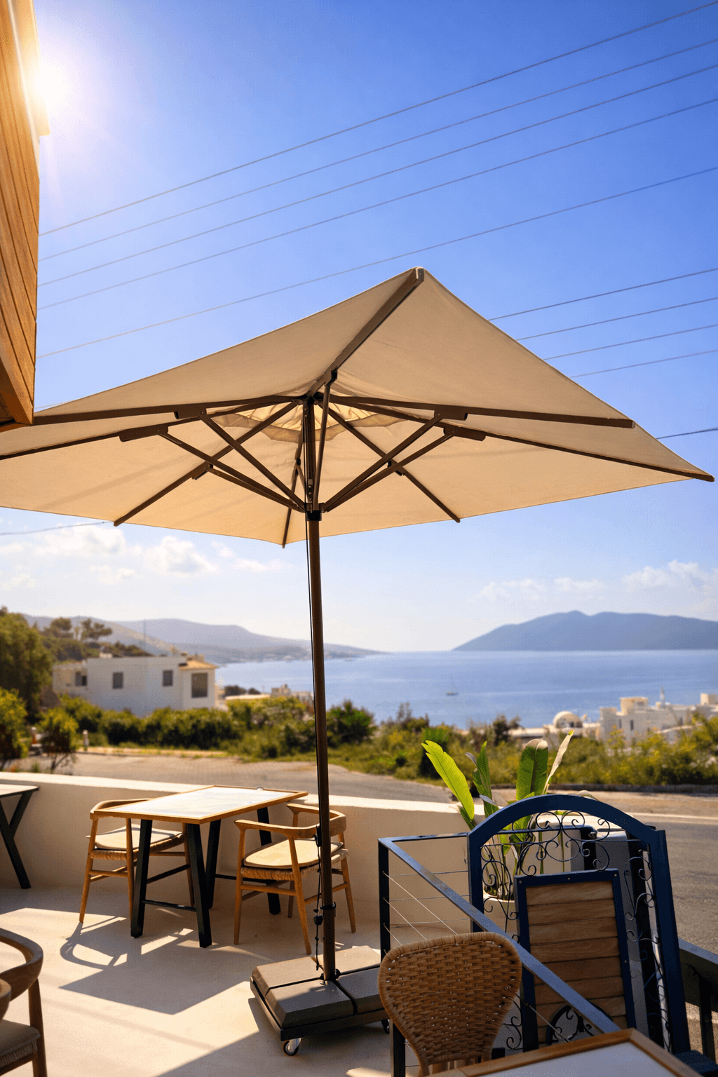 Bodrum’da yer alan The SAF Coffee’nin açık oturma alanlarında, gün boyu konforlu gölgelendirme ihtiyacını karşılamak amacıyla 50 Serisi – 250x250 Kare Şemsiye tercih edilmiştir. 50 mm çapındaki güçlü alüminyum orta borusu ve tamamı alüminyumdan oluşan taşıyıcı yapısı sayesinde şemsiye, rüzgâr ve yoğun kullanıma karşı yüksek dayanım sunar. 250x250 cm kare ölçüsü, cafe ve restoran teraslarında dengeli gölge alanı oluşturarak misafir konforunu artırır. Kilitlemeli açma-kapama sistemi ise günlük kullanımda hızlı, güvenli ve pratik bir deneyim sağlar.
