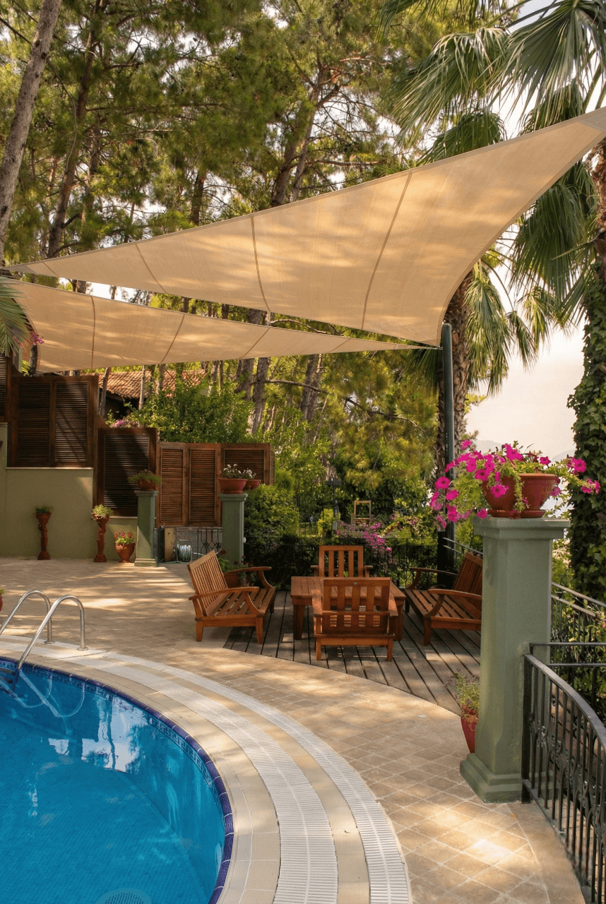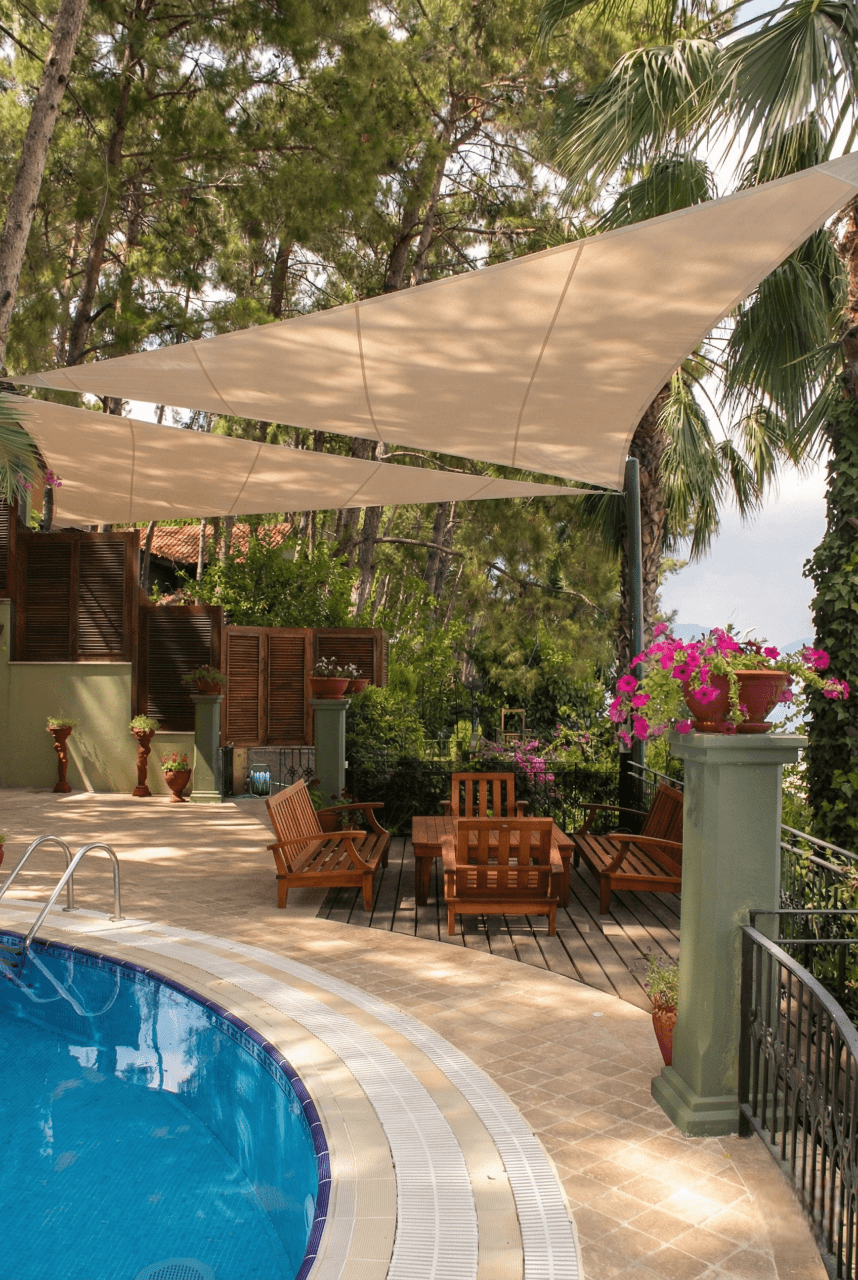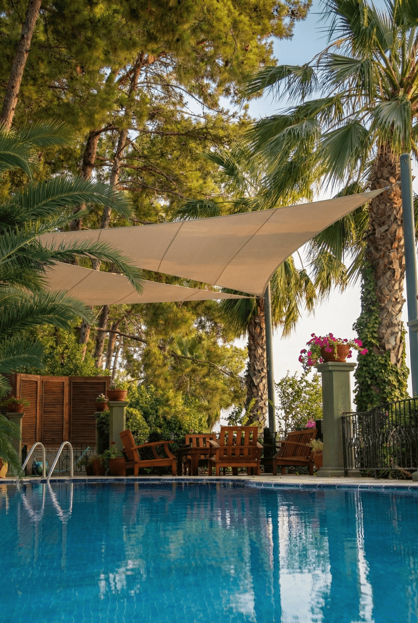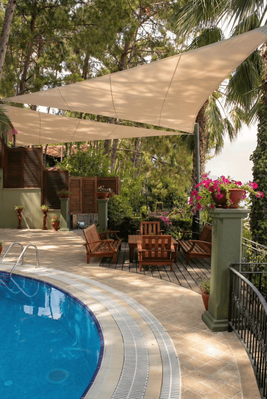 Marmaris’ in çam ormanlarıyla denizin kucaklaştığı eşsiz bir noktada yer alan Turban Yazıcı Otel’de, doğanın kalbinde sanatsal bir gölgelendirme projesine imza attık. Tesisinasırlık ağaçlar ve zengin peyzajla çevrili dış mekan sosyal alanlarını, mimari birer odak noktasına dönüştürmek amacıyla Yarasa Tente sistemimizi tercih ettik. Bu projede, hem estetik duruşu hem de yüksek güneş koruma performansıyla bilinen ithal akrilik kumaş kullanılmıştır. Turban Yazıcı Otel’ in o meşhur yeşil dokusu içerisinde, ağaçların arasından süzülen bir sanat eseri gibi kurgulanan bu tasarım, mekana modern bir hava katarken aynı zamanda dekoratif bir ferahlık sunmaktadır. Selçuk Tente kalite farkıyla hayata geçirilen bu uygulamada, Marmaris’in nemli ve güneşli sahil iklimine karşı şu teknik detayları titizlikle uyguladık: