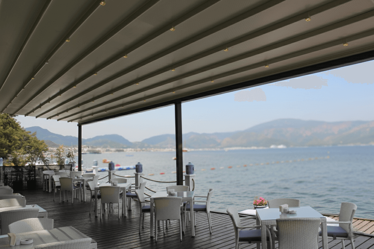 • Entegre LED Aydınlatma Şıklığı: Sistemin rayları üzerine gizlenen özel LED ışıklar, akşam saatlerinde Marmaris sahilinin parıltısına eşlik eden, modern ve büyüleyici bir aydınlatma ambiyansı sunar.