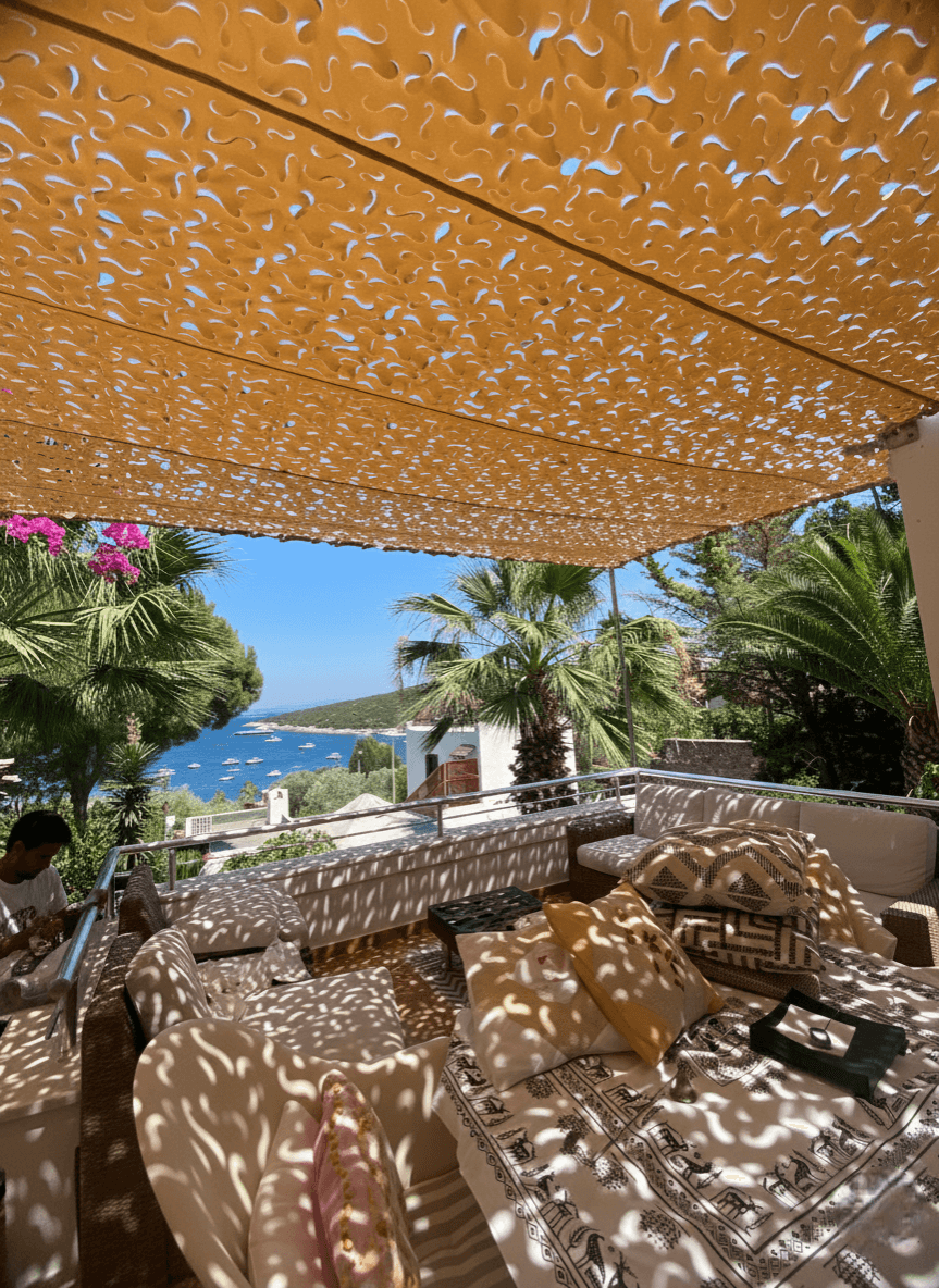 Kullanım Alanları; Bu özel kumaş teknolojisi; Yarasa Tente ve Telli Tente sistemlerinde de kullanılabilmekle birlikte; asıl "Kamuflaj Tente" ürünümüz, bu efsaneleşen kumaşın Sabit Tente iskeleti üzerine uygulandığı, mekanlara derinlik katan modelimizdir. Tamamen kapalı, basık bir ortam yerine; ferah, nefes alan ve yarı-gölgeli şık bir atmosfer sunar.