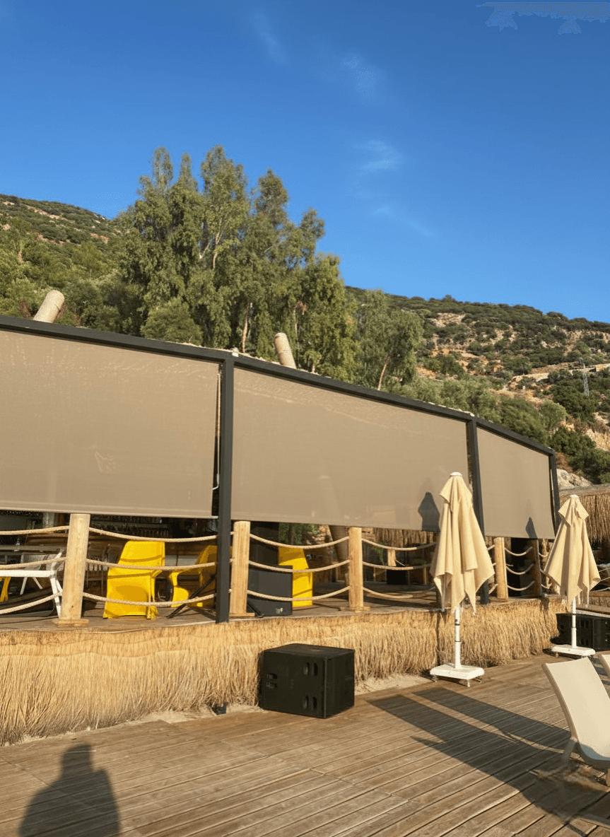 dış mekanlar için özel olarak geliştirilmiş işlevsel bir gölgeleme sistemidir. Piyasadaki "Zip"