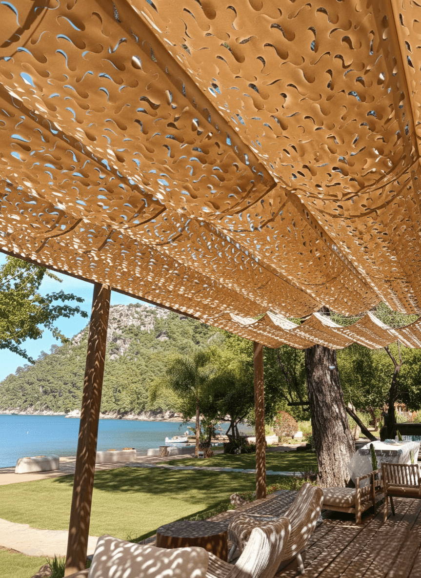 Selçuk Tente mühendisliği ile geliştirilen Telli Tente, estetik ve fonksiyonelliği bir araya getiren yenilikçi bir gölgelendirme çözümüdür. Türkiye’de bir ilke imza atarak, Kamuflaj Kumaş uygulamasını manuel sistemle, kusursuz bir uyum içinde çalışır hale getirdik. Modern mimariye uyum sağlayan tasarımıyla mekanlarınıza değer katarken, kullanım kolaylığı ile gölgeyi yönetmeyi bir keyfe dönüştürür.