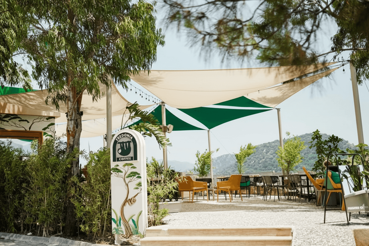 Mekanlara kattığı estetik derinlik ve modern hava ile bilinen Yarasa Tente, özellikle yaz ayları için tasarlanmış şık bir gölgelendirme çözümüdür. Bu sistem; müşterimizin mevcut direklerine, binasına veya bizim yönlendirmemizle hazırlanan bağlantı noktalarına gerdirilerek uygulanır. Mekanın yapısına göre simetrik veya asimetrik üçgen, kare veya dikdörtgen formlarda tasarlanarak